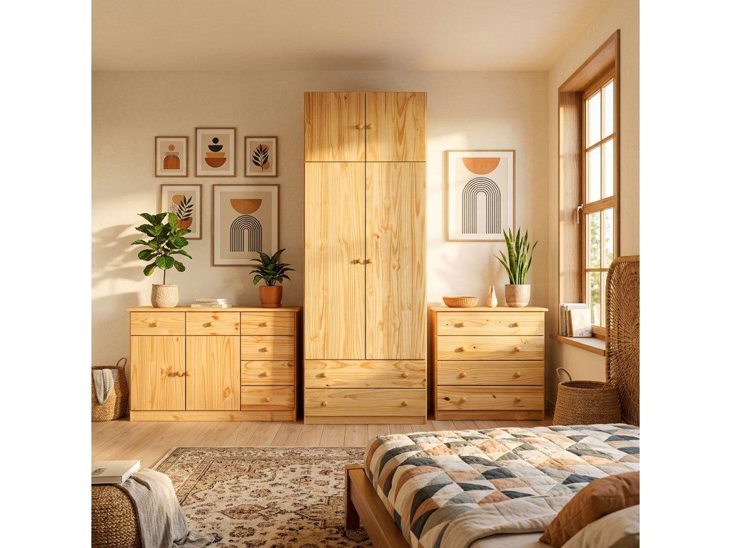 Vyroben z masivu borovice s lakovaným povrchem, který zajišťuje odolnost a snadnou údržbu. Povrch je hladký a příjemný na dotek, vhodný do moderních i klasických interiérů.