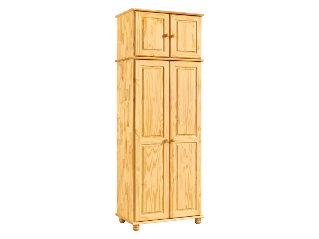 Skříň je vyrobena z masivu borovice s lakovaným povrchem, který zajišťuje pevnost a snadnou údržbu.