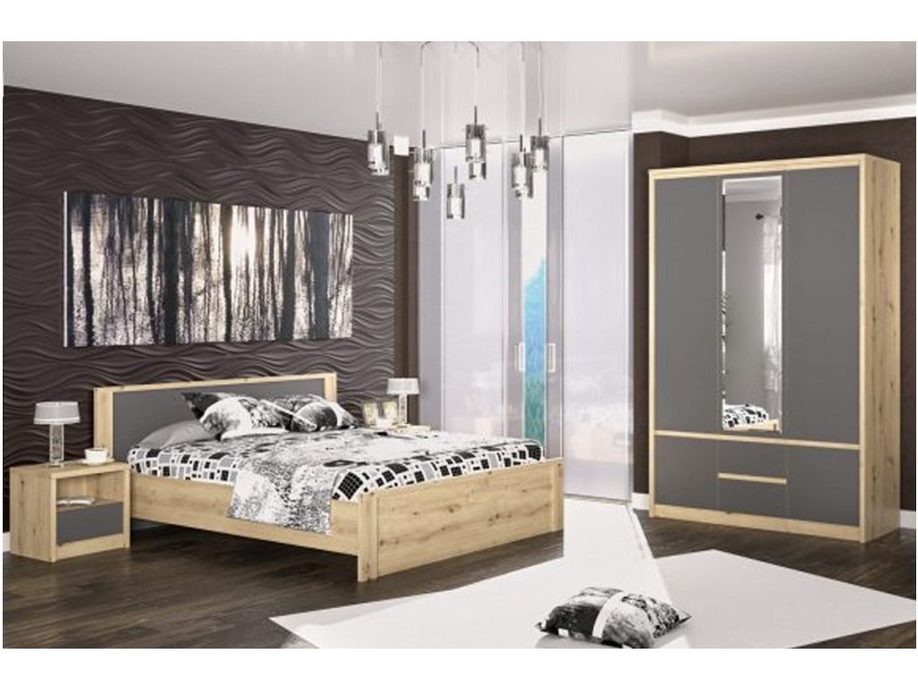 Sestava do ložnice ze sektorového nábytku. Barevné provedení dub artisan/šedý je zajímavé zachováním struktury dřeva. Bezúchytový systém podtrhuje jednoduchost, eleganci a moderní styl této řady. Nabídka komponentů této sektorové řady umožňuje sestavit si nábytek do ložnice dle vlastních představ. Sestava se skládá z (š/v/hl): postel 160 ( 184,8 x 85 x 204,3 cm), 2 kusy nočního stolku ( 46,4 x 45,6 x 39,3 cm ), komody se 4 zásuvkami (89 x 92 x 39,3 cm). Možnost dokoupení šatní skříně a zrcadla. V ceně není zahrnuta matrace ani rošt, možno dokoupit, vhodný rozměr 160 x 200 cm nebo 2 ks 80 x 200 cm. Vyrobeno z kvalitní LTD desky. Dodáváme v demontovaném stavu.Doplňkové parametry
