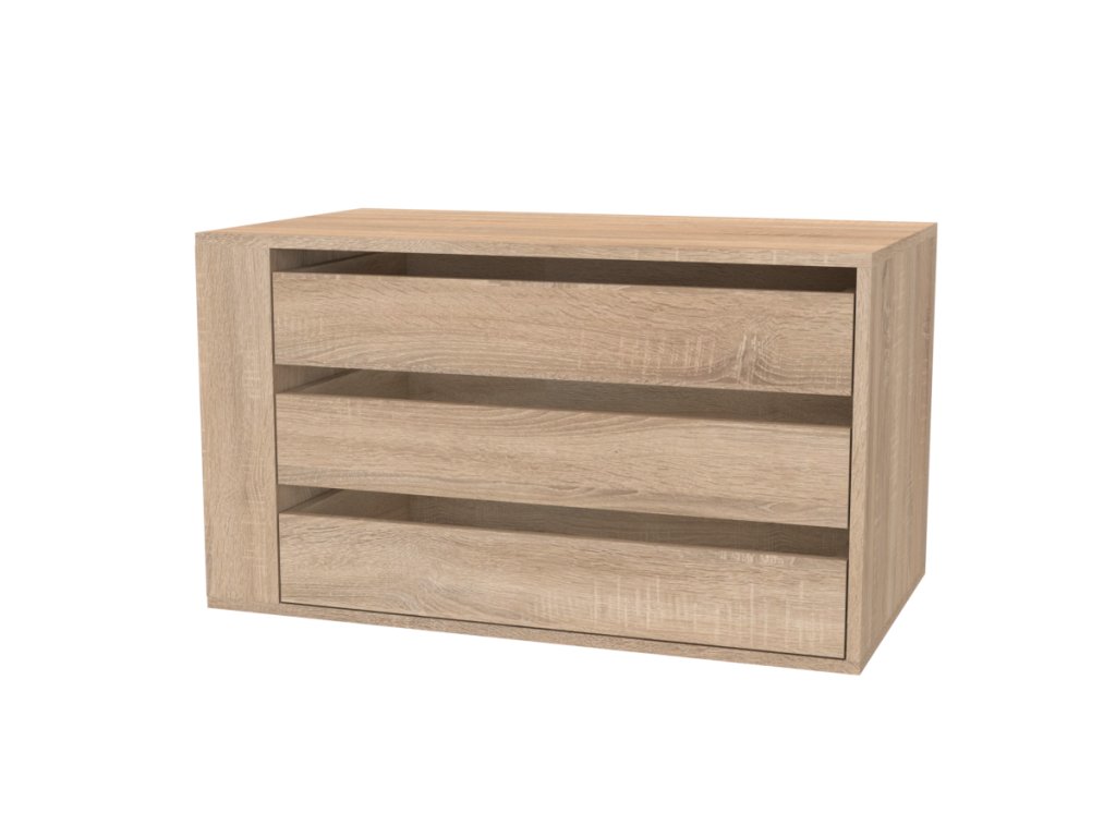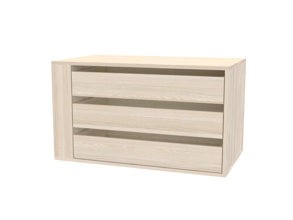 Vyroben z lamina o síle 18 mm s ABS hranami, zásuvky s plnovýsuvy a tichým dojezdem zajišťují dlouhou životnost a snadné používání.