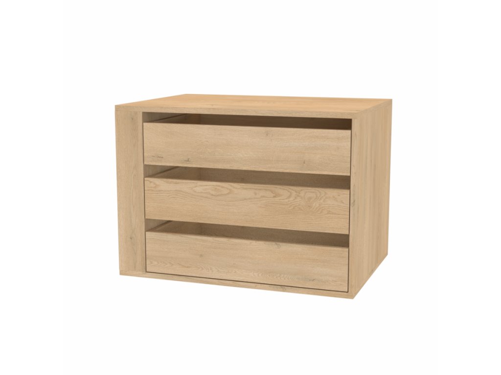 Bezúchytový kontejner do skříní FLEXI šířky 200 cm i 300 cm je vyroben z lamina o síle 18 mm. Výběr z několika akčních dekorů. Kvalitní kování a spojovací materiál je bez použití plastových součástek, vyjma ochranných krytek. Zásuvky s 3D skrytými plnovýsuvy, snadné nastavení ve 3 směrech tak, aby zásuvka perfektně zapadla na místo a snadno vyjížděla. S tlumením s dotahem. Efektní a praktické ABS hrany.