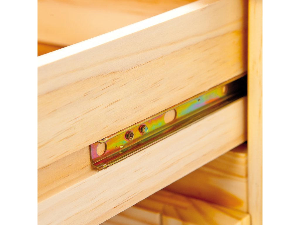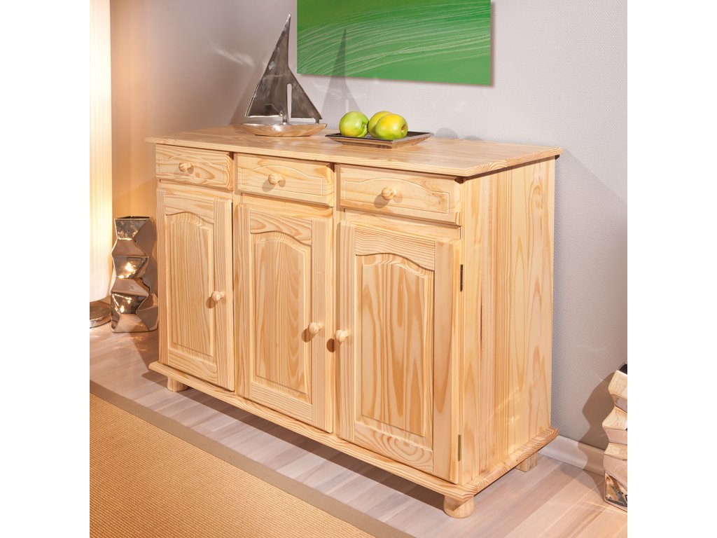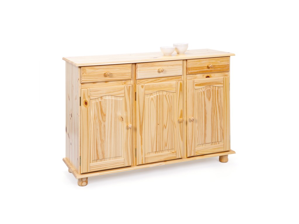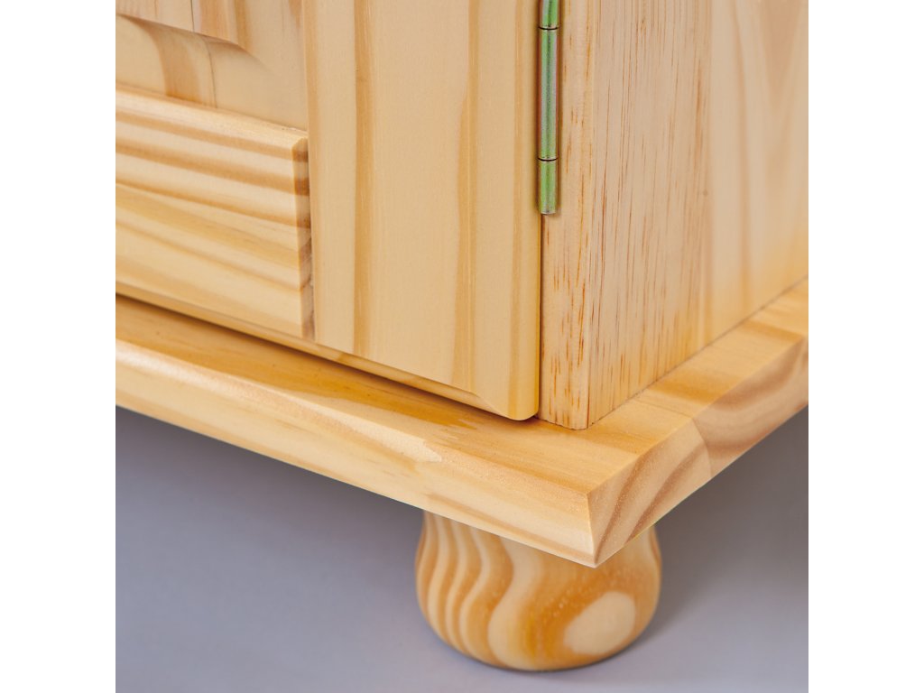 Vyrobena z masivu borovice s lakovaným povrchem, komoda zajišťuje dlouhou životnost a snadnou údržbu v každodenním provozu.