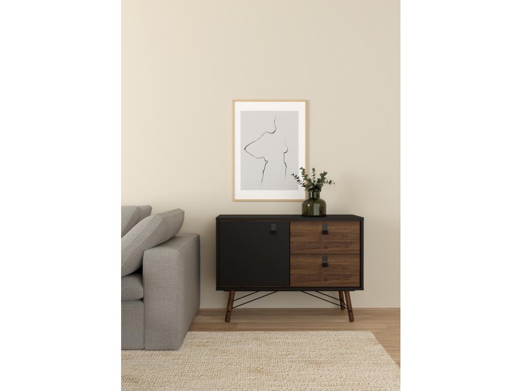 Komoda Rain 1d2s nabízí kombinaci zásuvek a skříňky pro přehledné uspořádání oblečení a doplňků. Díky kompaktním rozměrům se hodí i do menších prostor.