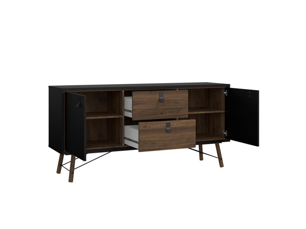 Skandinávská komoda Rain 2d2s černý MAT/ořech, 150x72x40 cm