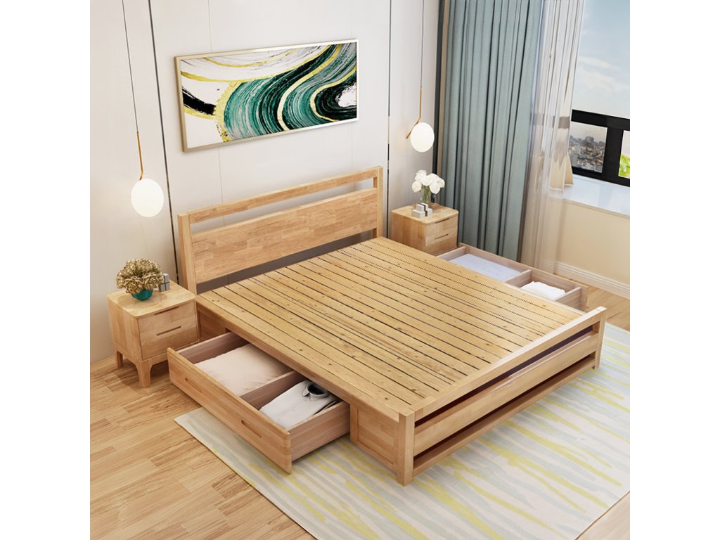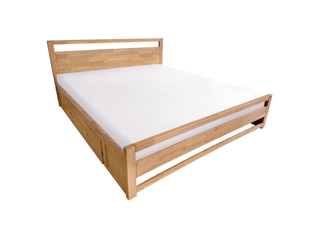 Masivní manželská postel SHEILA 180x200 cm, přírodní dřevo, úložný prostor