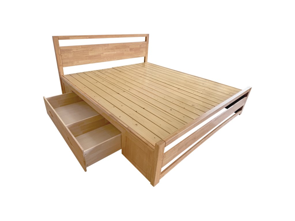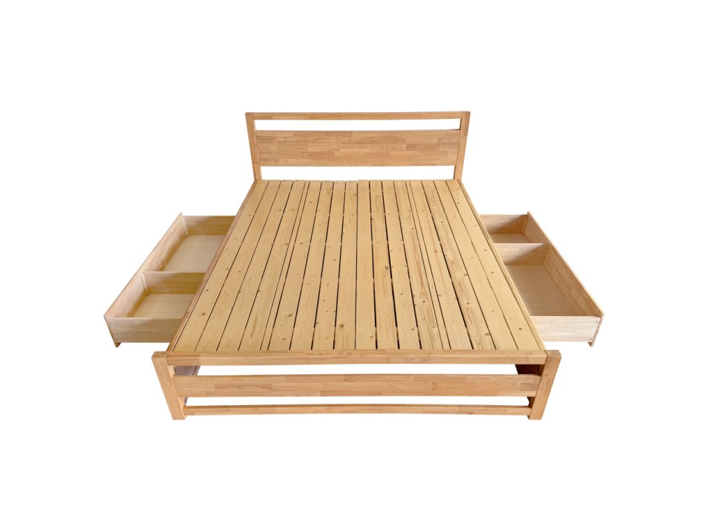 Postel je vyrobena z kaučukového dřeva v přírodním odstínu, který dodává interiéru teplý a přírodní vzhled. Rozměry umožňují pohodlné spaní a snadnou integraci do ložnice.