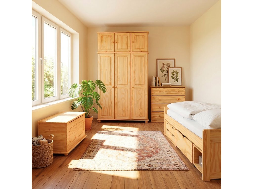 Vyroben z masivní borovice s lakovaným povrchem, nástavec zajišťuje dlouhou životnost a snadnou údržbu. Hodí se do moderních i klasických ložnic.