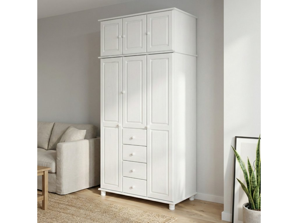 Bílý lakovaný nástavec 3dveřový KASTE 8864B z borovice na skříně