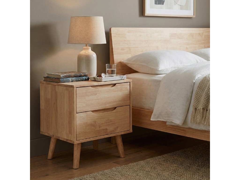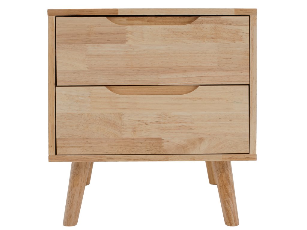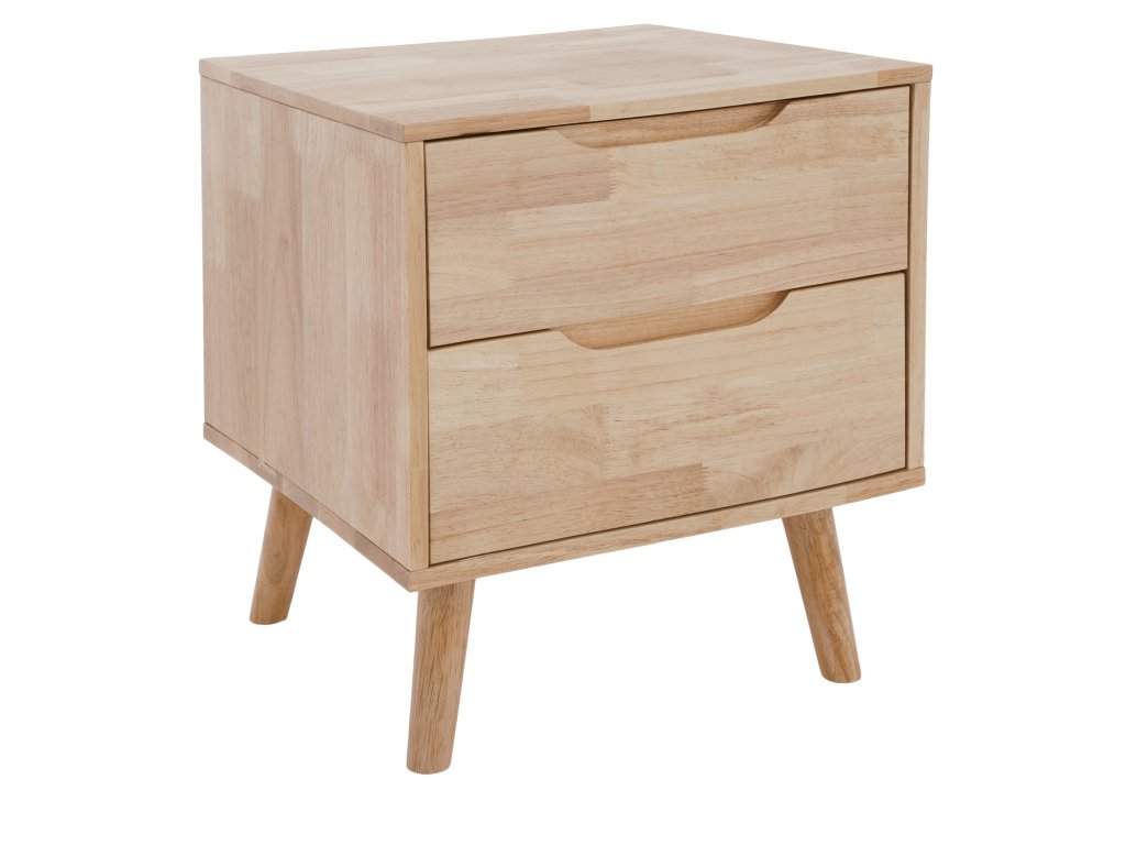 Masivní noční stolek BRUNI nabízí dva šuplíky na uschování drobností. Ideální doplněk do ložnice na odkládání knih, lampiček či osobních věcí.