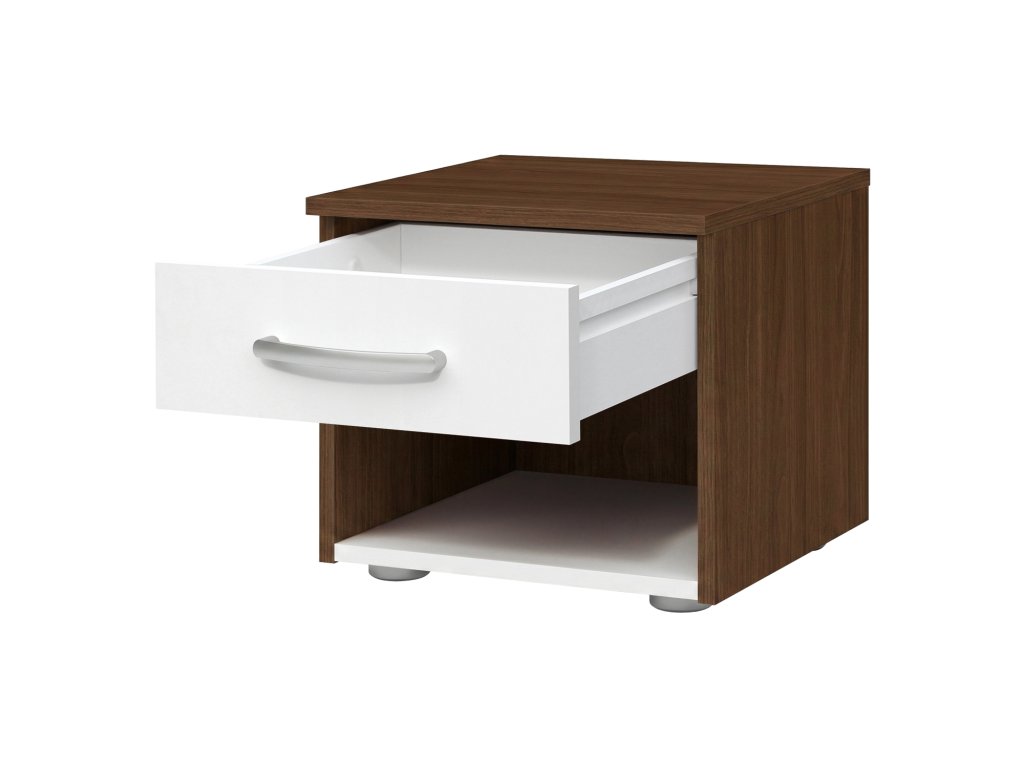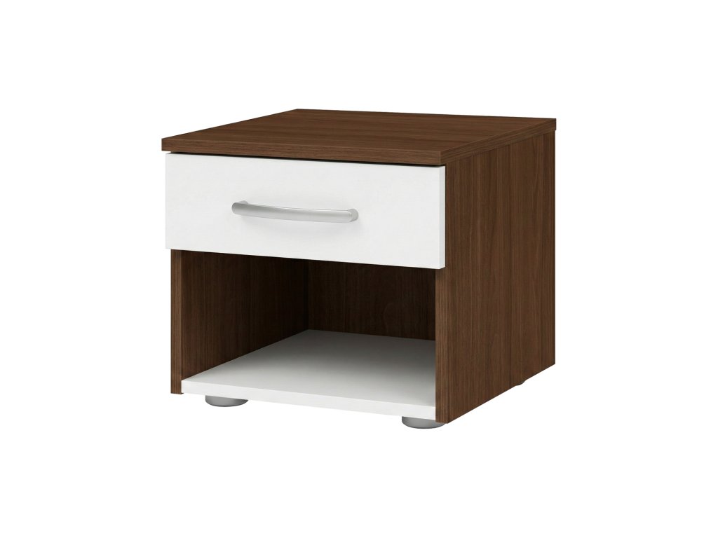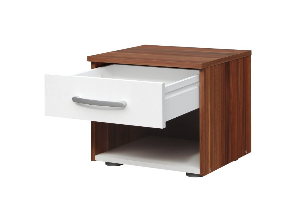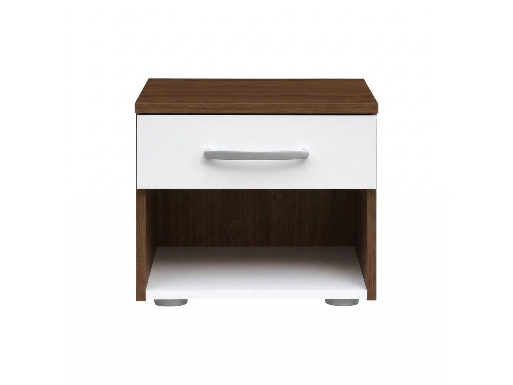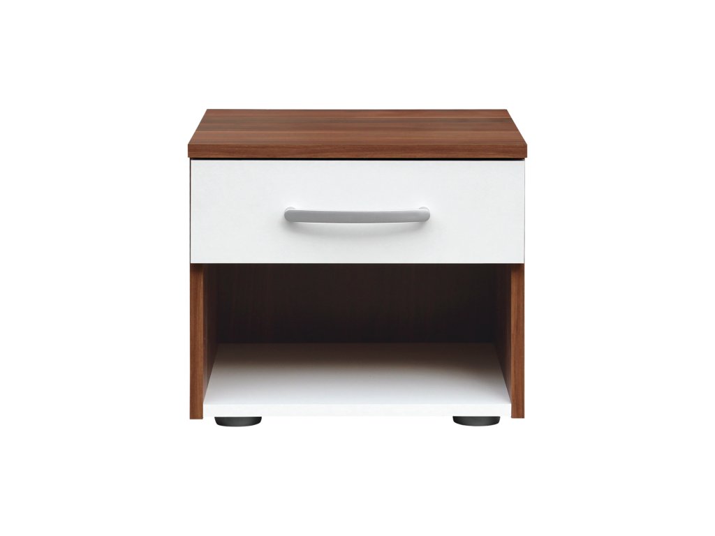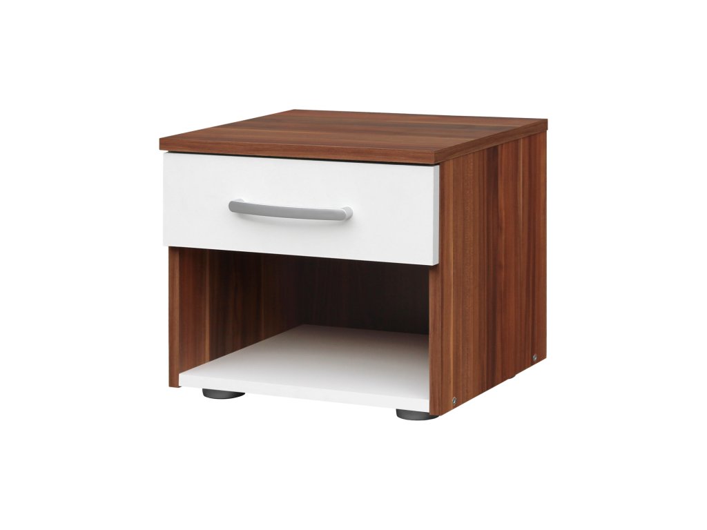 Noční stolek 60140 v kombinaci ořechu a bílé barvy nabízí kompaktní úložný prostor v podobě jedné zásuvky. Ideální pro uložení drobností, které chcete mít po ruce během noci.