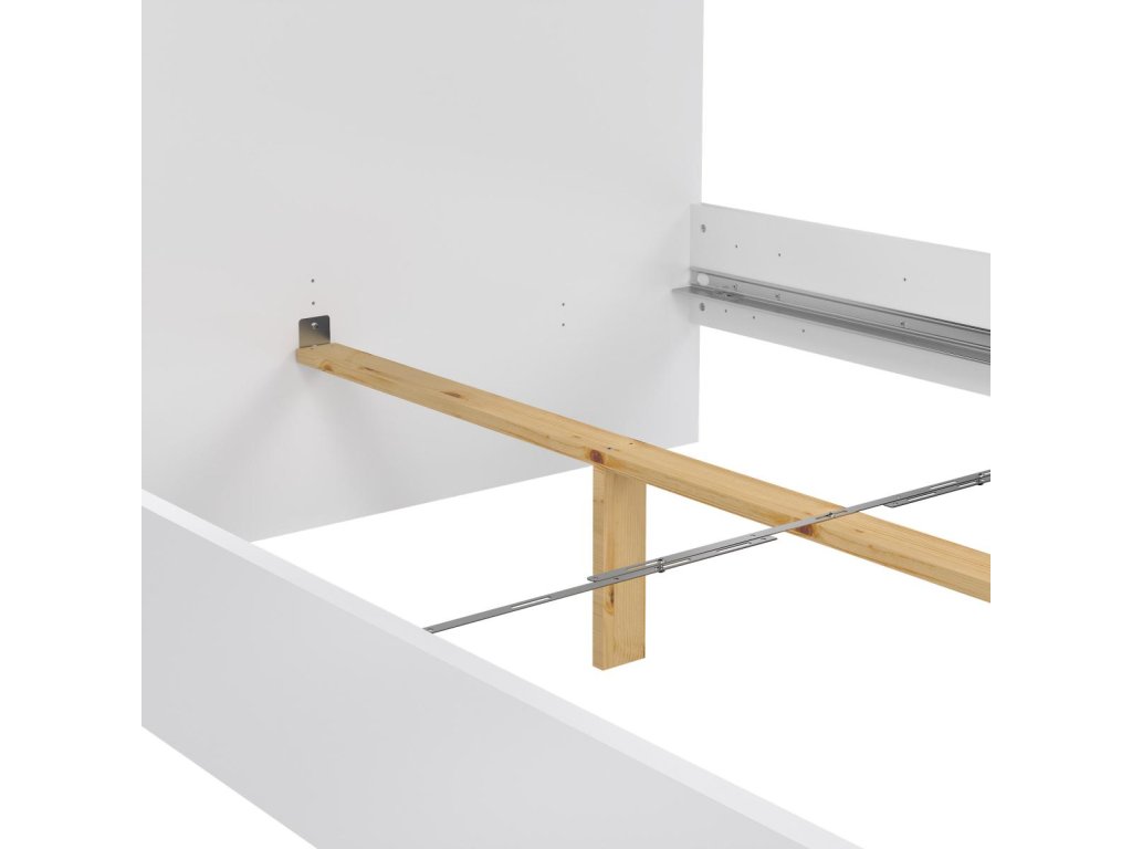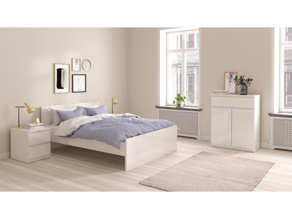 Postel nemá úložný prostor, což podtrhuje její jednoduchost a lehkost. Povrch v bílém lesku snadno sladíte s různými styly interiéru.