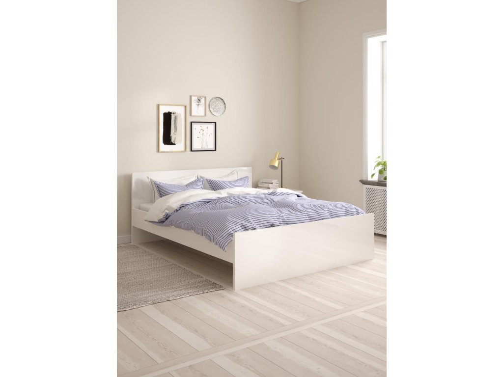 Postel má jednoduchý a nadčasový skandinávský design s bílým leskem, který se hodí do moderních i klasických interiérů.