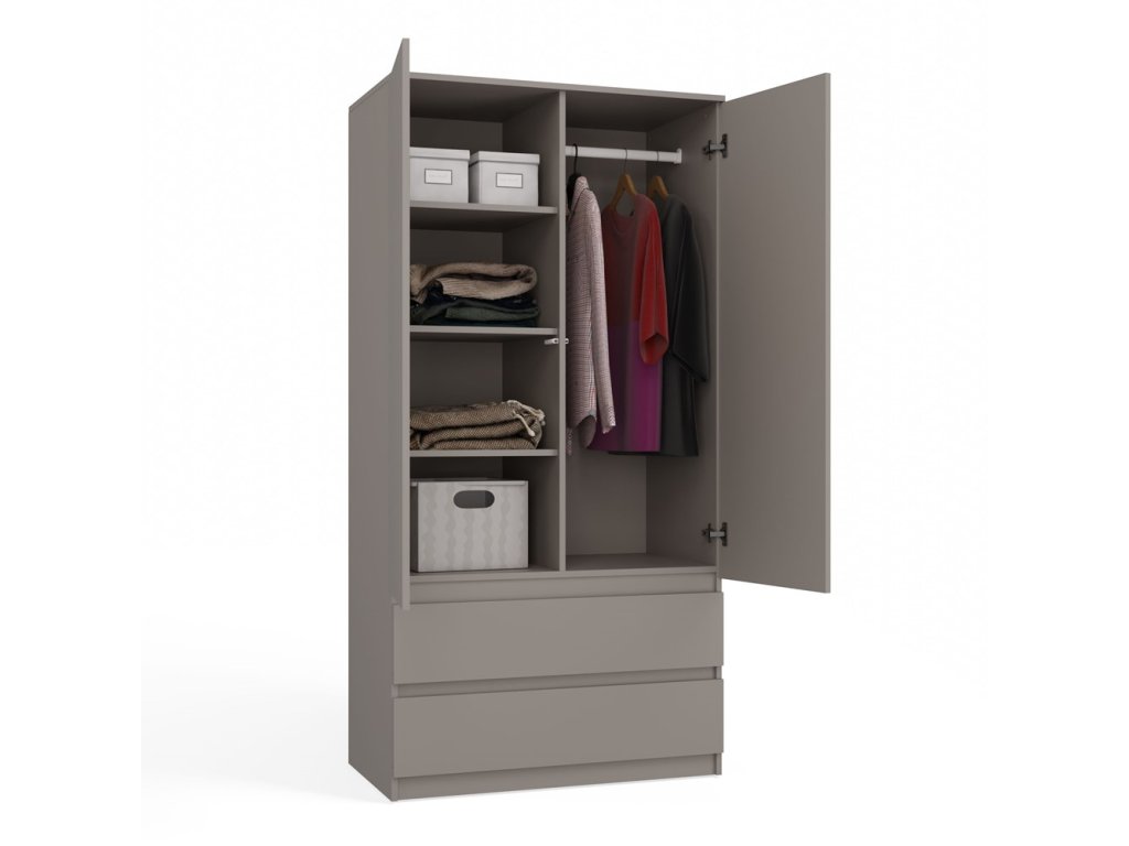 Šatní skříň Malvína 2S-90 šedá jíl