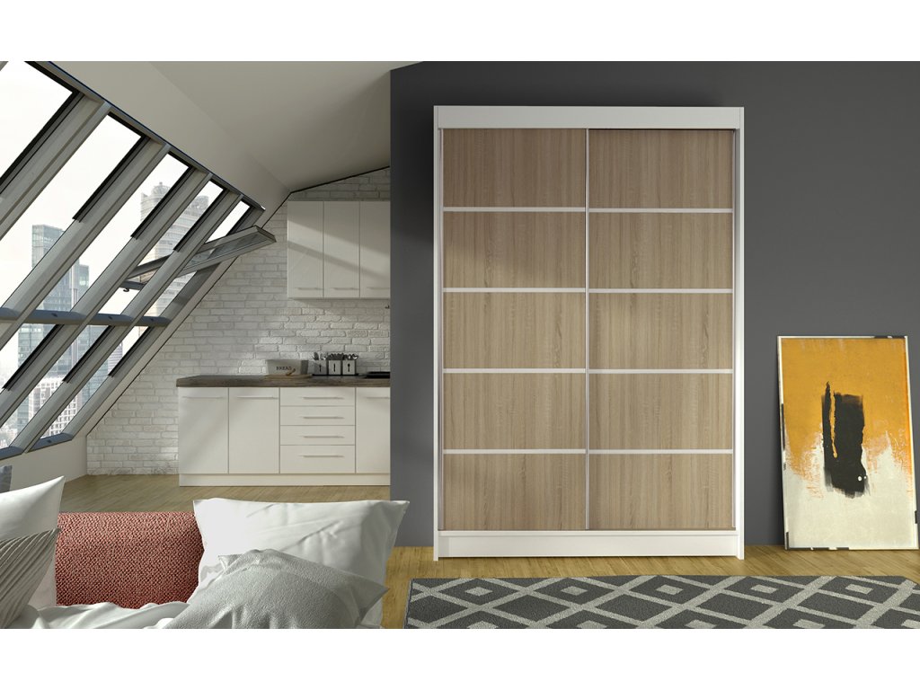 Vhodná do ložnice, dětského či studentského pokoje, předsíně i kanceláře. Kombinace bílé a dekoru sonoma ladí s různými styly interiéru.