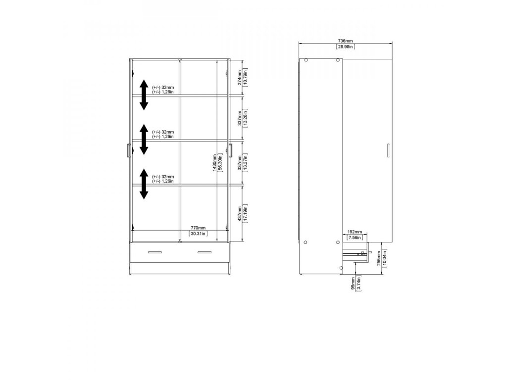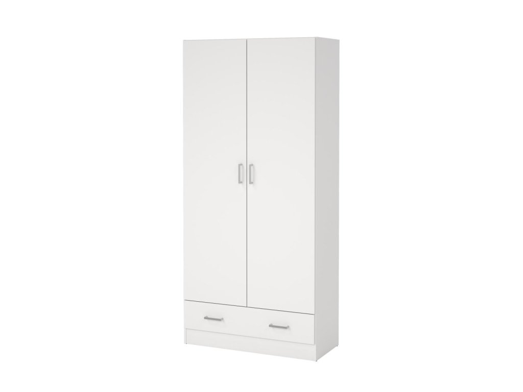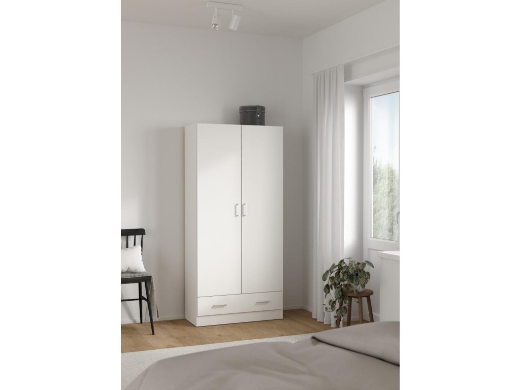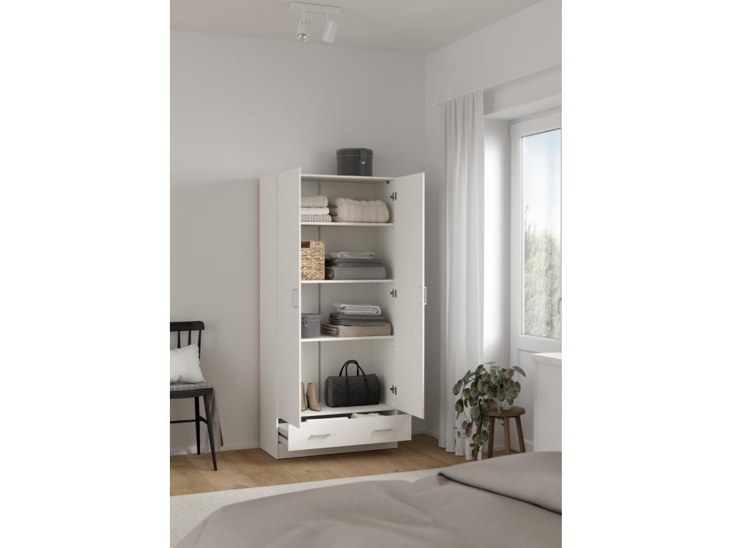 Skříň Pegi 403 v bílé barvě nabízí dostatek prostoru díky nastavitelným policím. Je ideální pro uložení oblečení a doplňků v ložnici či předsíni.