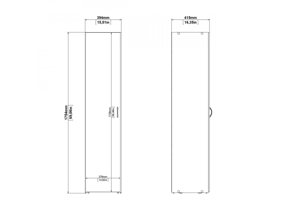 Skříň má výšku 176 cm, šířku 40 cm a hloubku 42 cm, což ji činí vhodnou i do menších prostor.