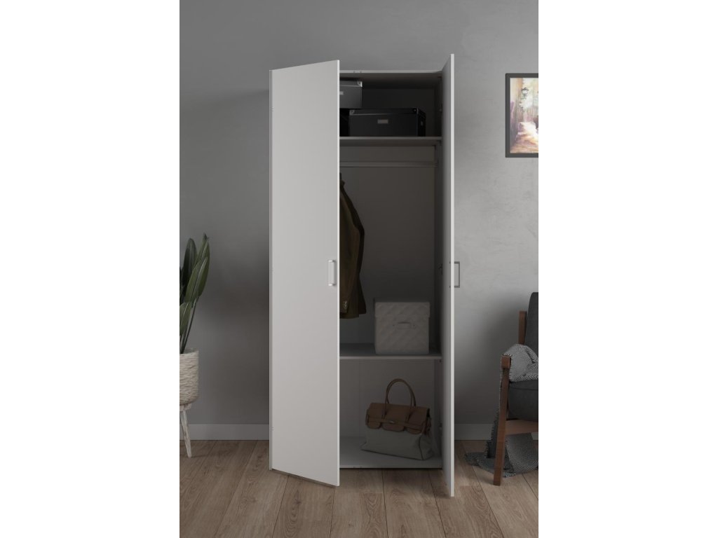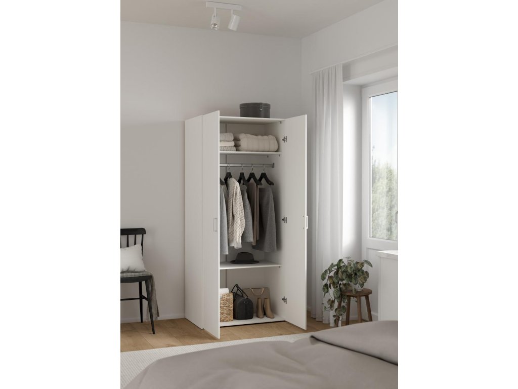 Skříň Sid 2d v bílé barvě nabízí dostatek prostoru pro uložení oblečení a doplňků. Díky kompaktním rozměrům se hodí i do menších ložnic nebo předsíní.