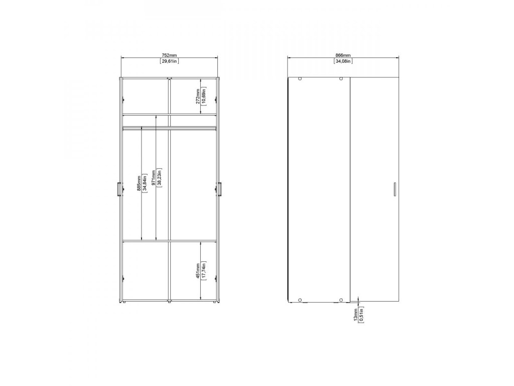 Vyrobeno z kvalitního lamina s plastovými úchytkami. Skříň Sid 2d je stabilní a odolná, vhodná pro každodenní používání v domácnosti.