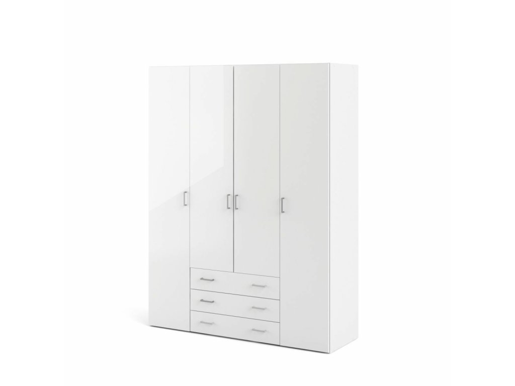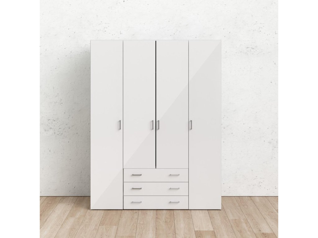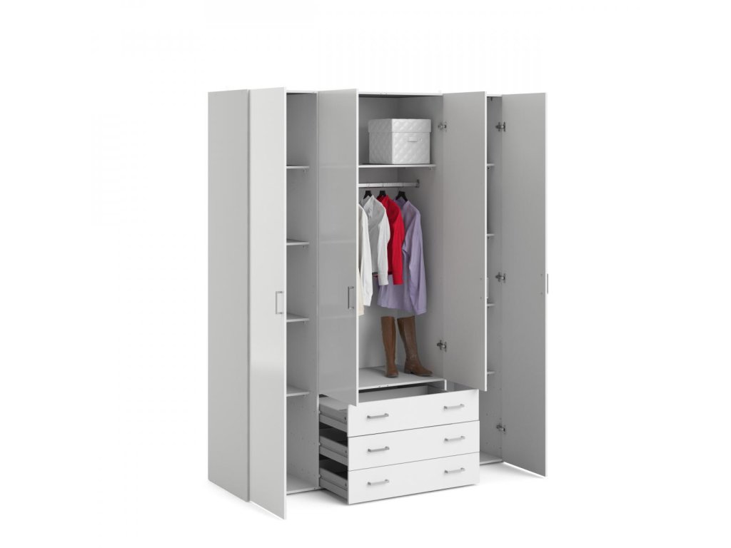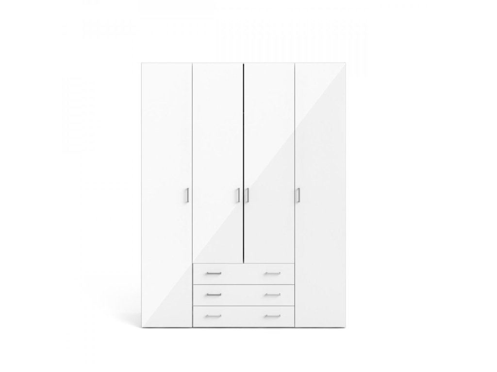 Skříň Sid 4d3s bílá/bílý lesk, 200x154x49,5 cm, moderní design FALCO