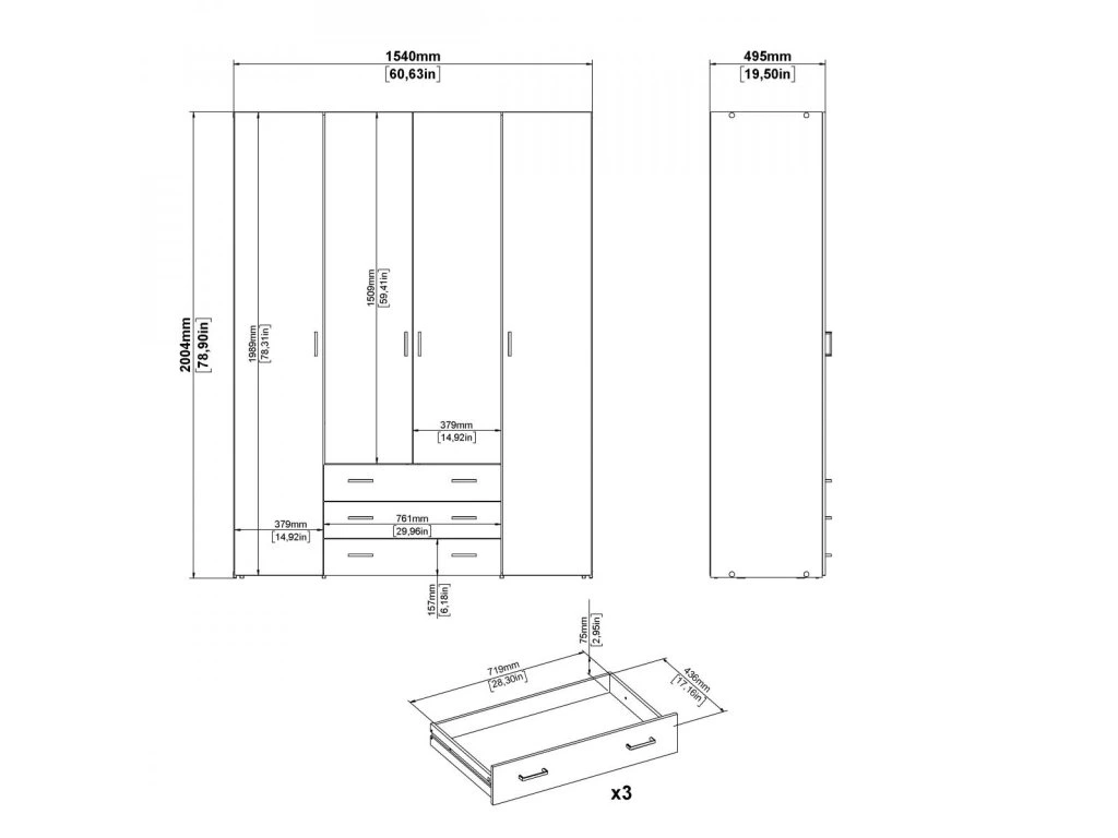 Minimalistický vzhled skříně Sid se hodí do různých stylů ložnic. Dodává se v demontu se schématickým návodem a všemi potřebnými spojovacími prvky pro snadnou montáž.