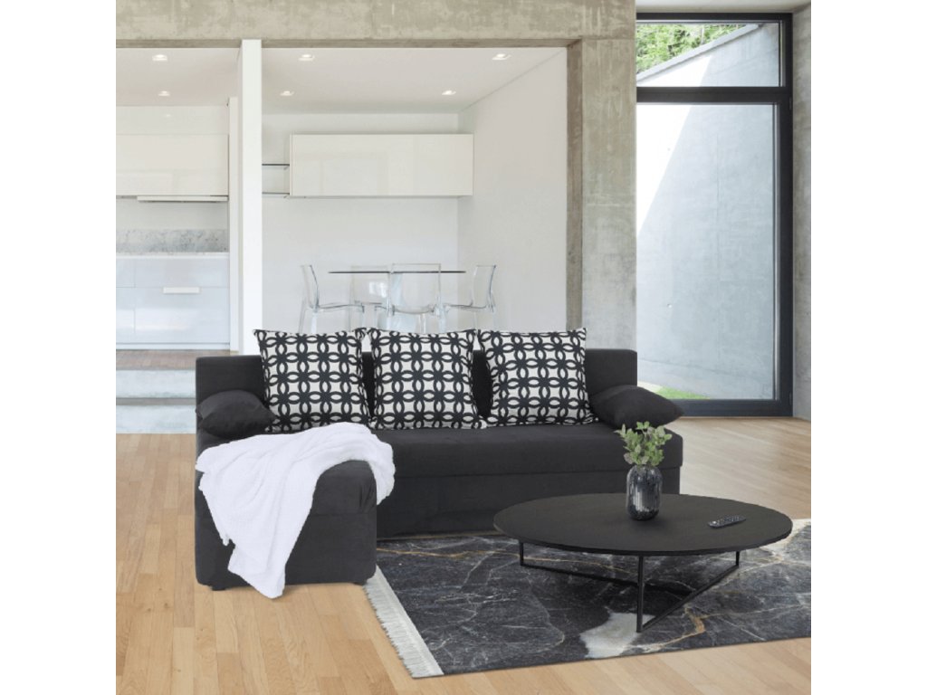 Vyrobena z odolné látky s oděruodolností 55 000 Martindale, což zaručuje dlouhou životnost i při častém používání. Barva tmavě šedá mix s polštáři vzor dodává moderní vzhled.
