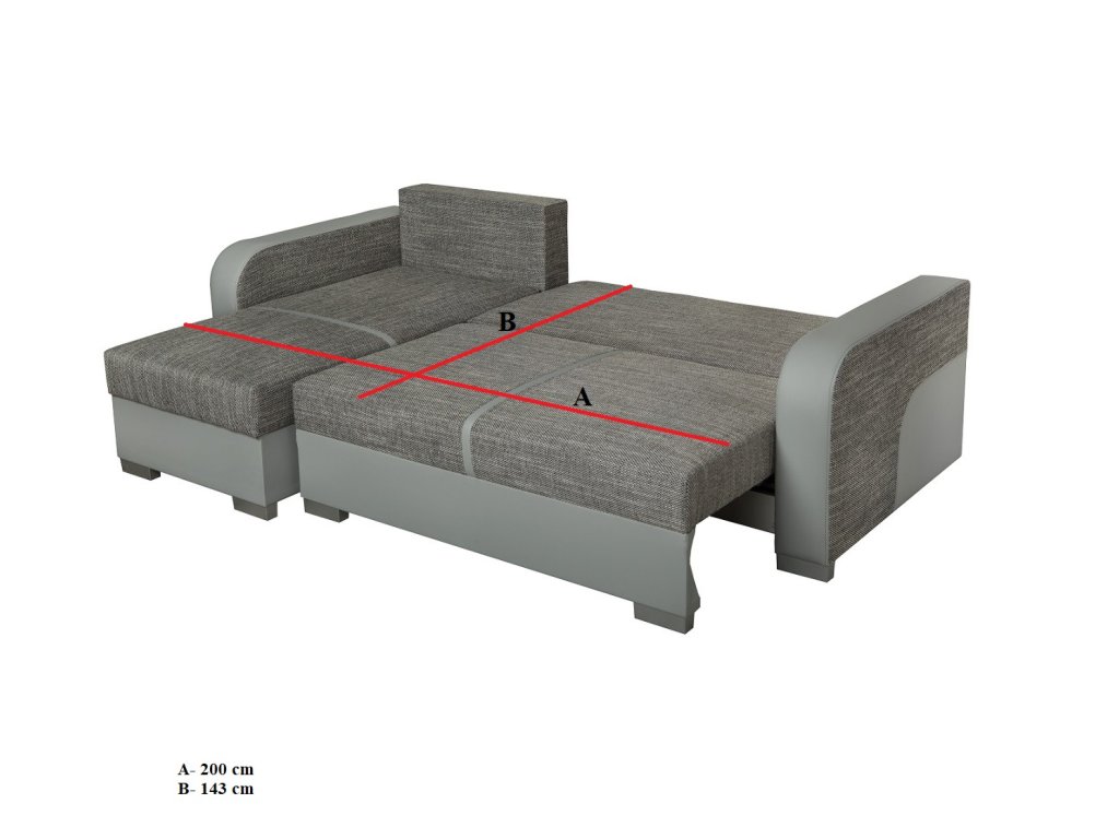 Souprava obsahuje úložný prostor a lze ji rozložit na lůžko s plochou 143x200 cm, ideální pro občasné přespání nebo ubytování návštěv.