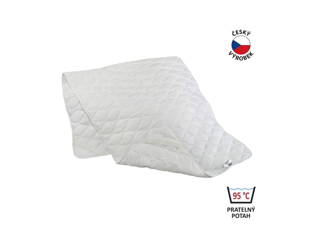 Ano, chránič je vyroben z polyesterového fleecu a lze jej prát až do 95 °C, což zajišťuje snadnou údržbu a hygienu.