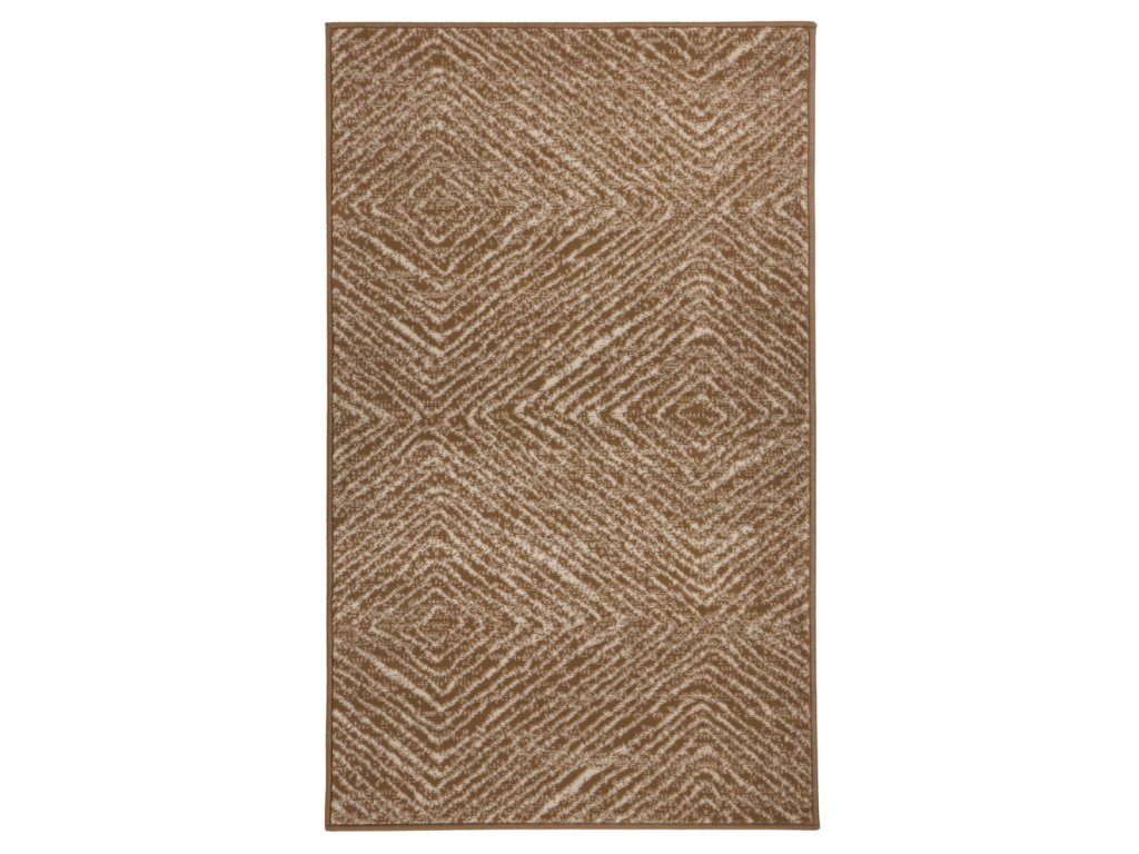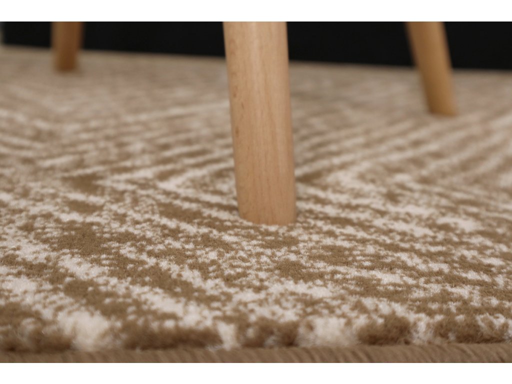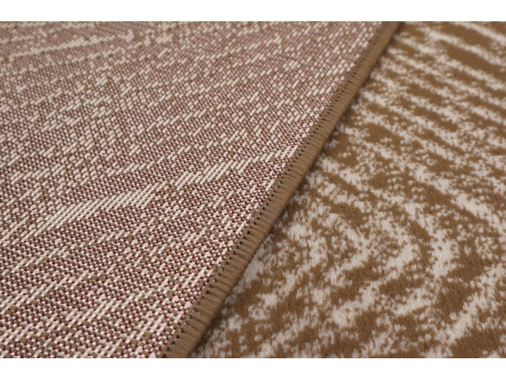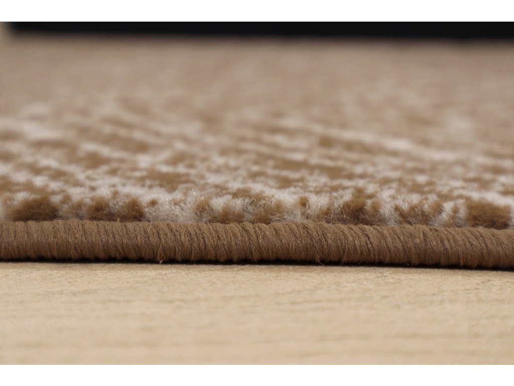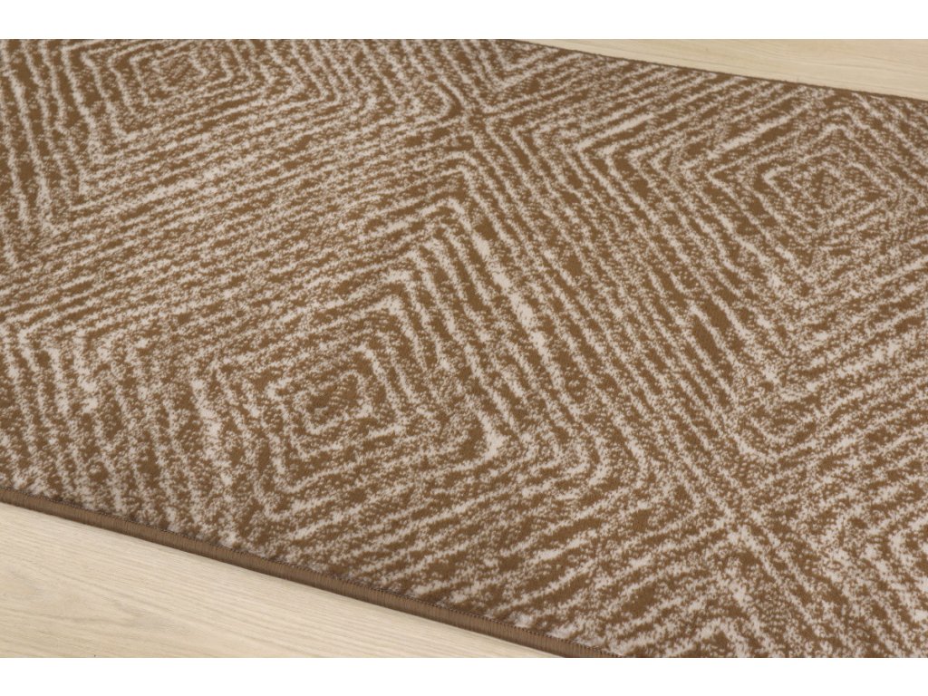 Motiv s obrysy kosočtverců v neutrální hnědé barvě se hodí do moderních i tradičních interiérů. Obšití po celém obvodu zabraňuje třepení okrajů.