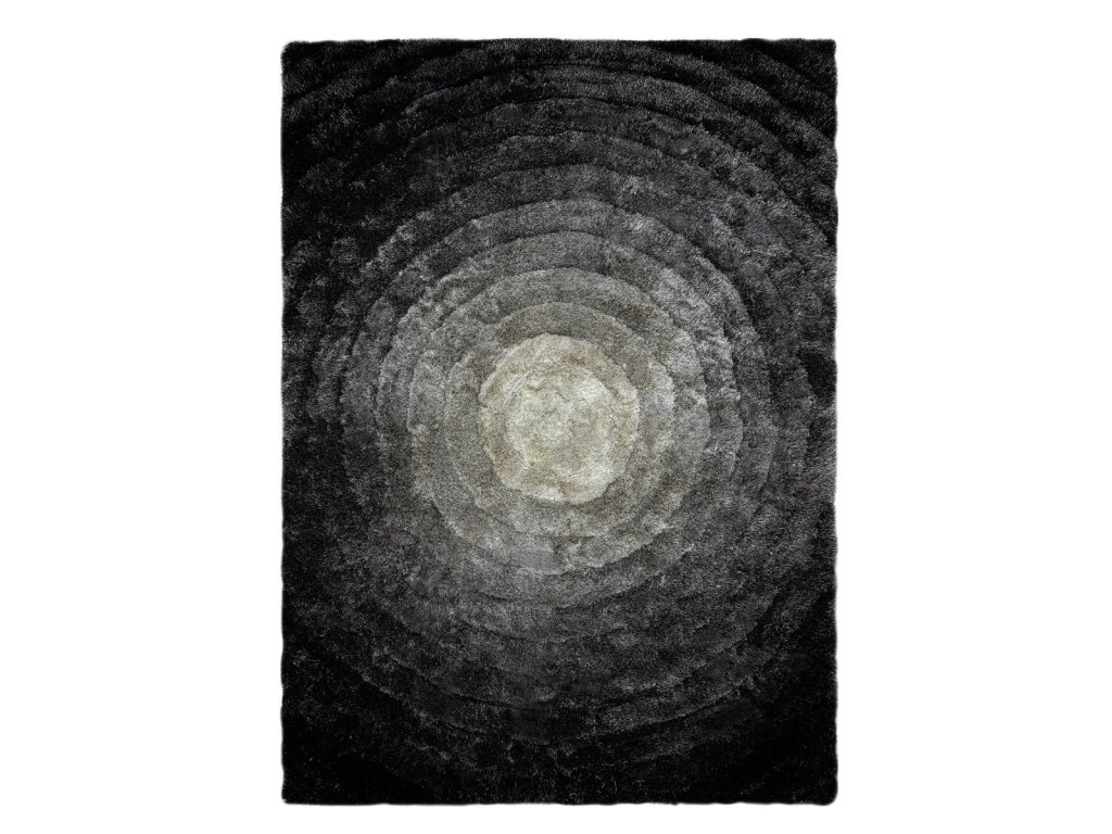 Koberec Flim 008-B2 Circles grey nabízí vysoký shaggy vlas ve dvou výškách, vytváří 3D efekt a dodává interiéru moderní eleganci. Ideální do obývacího pokoje nebo ložnice.