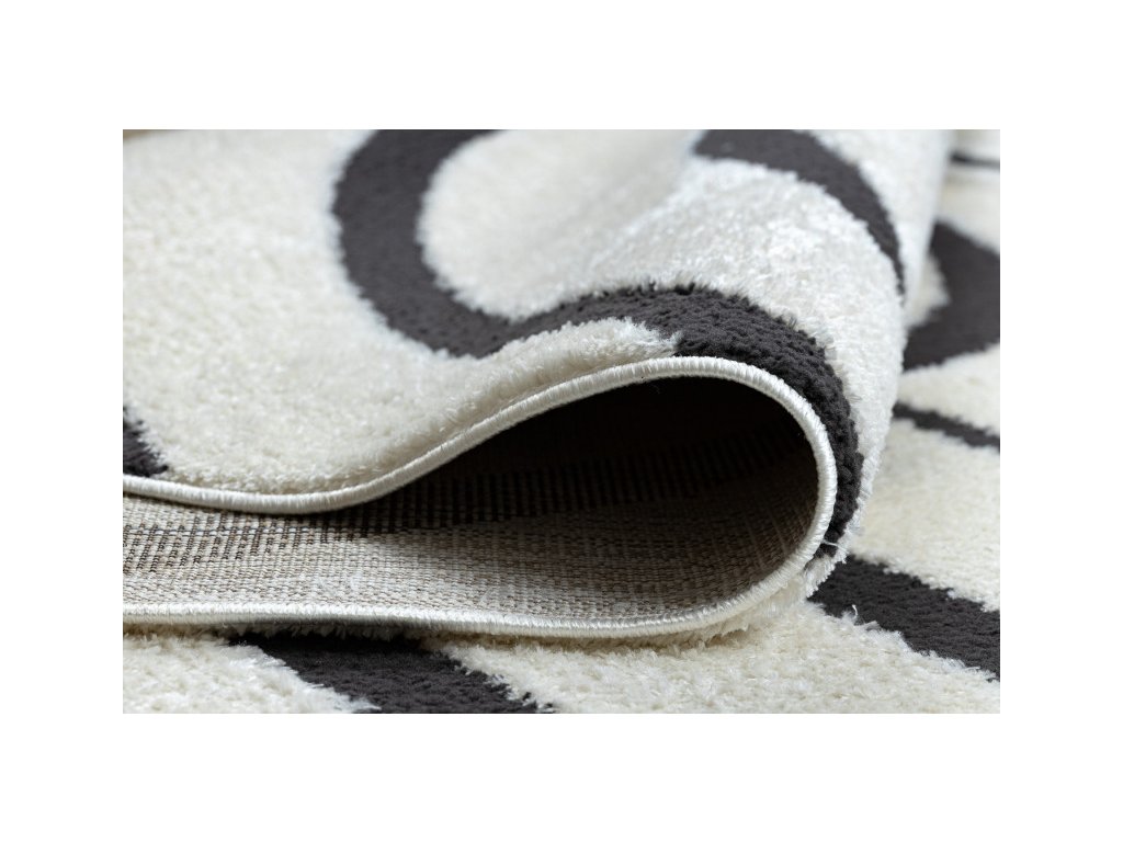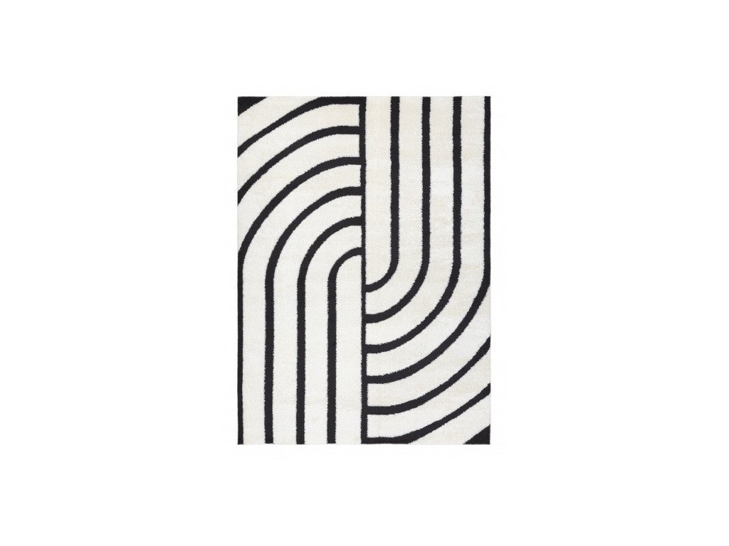 Kusový koberec Dywany Łuszczów Mode 8631 s geometrickým vzorem v krémové a černé barvě se hodí do skandinávského, minimalistického nebo industriálního stylu. Přináší elegantní a funkční prvek do obývacího pokoje, ložnice či kanceláře.