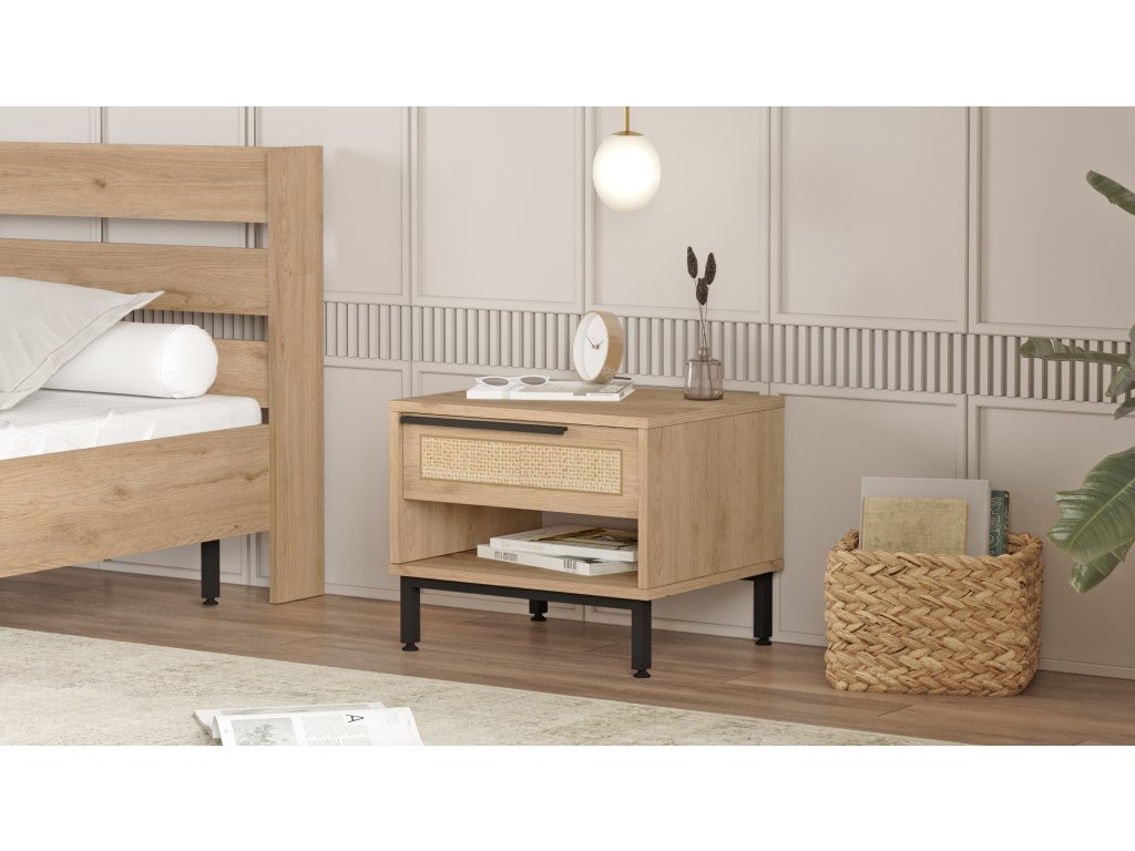 LAGOS noční stolek se šuplíkem, sepet/jutový vzor