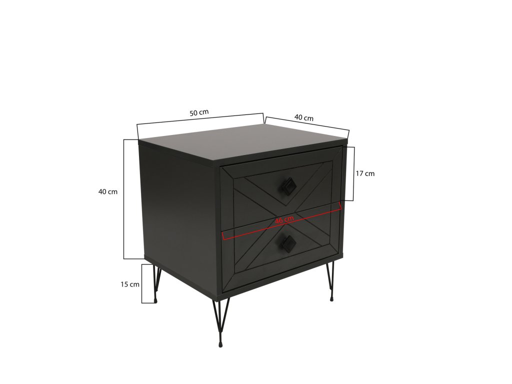 Stolek má šířku 50 cm, výšku 55 cm a hloubku 40 cm, což je ideální velikost pro většinu ložnic.