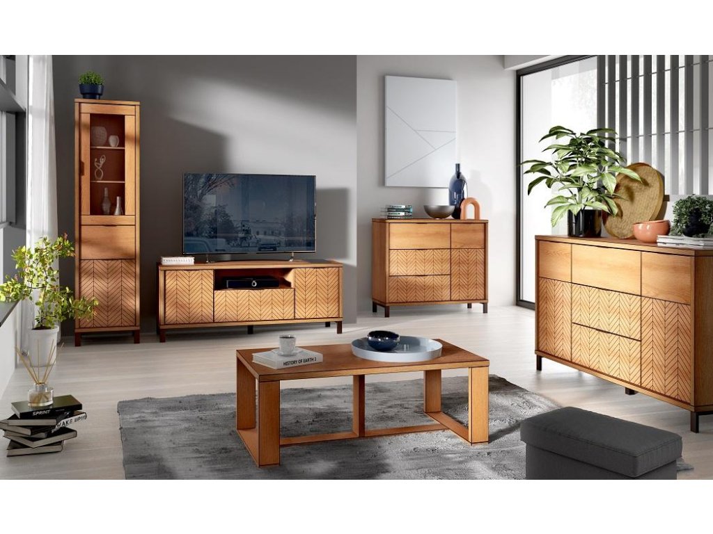 Sektor je ve stylu moderní elegance. Charakteristickým znakem nábytku je jeho stylové a elegantní zdobení na přední části.
