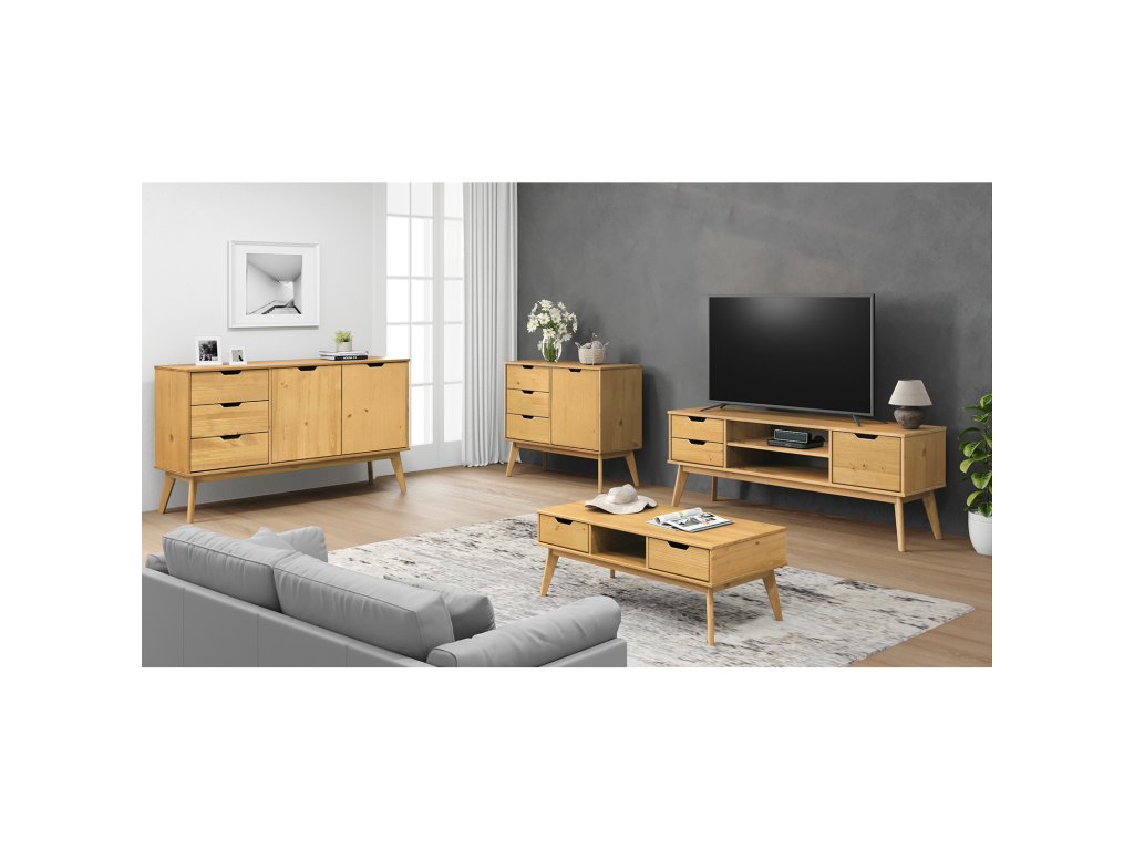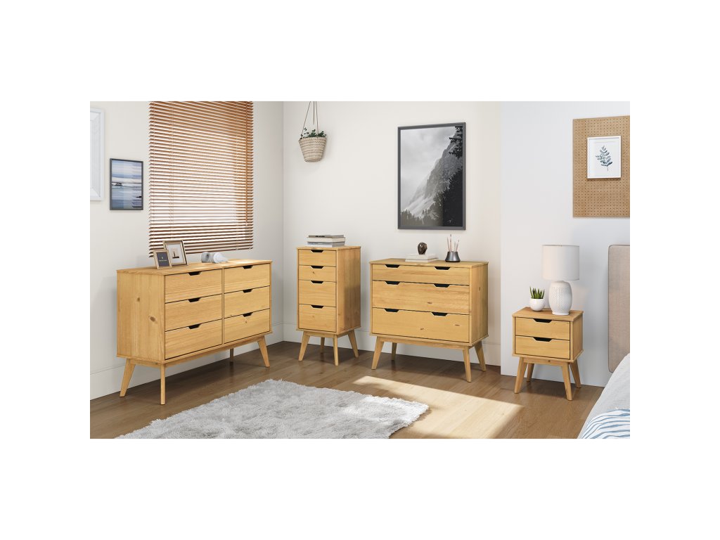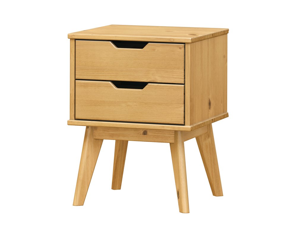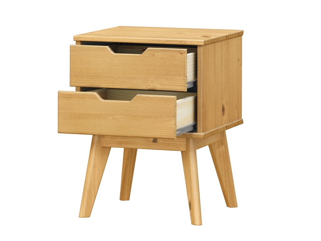 Vyroben z masivní borovice voskované v medovém odstínu, nabízí dvě zásuvky s kovovými pojezdy. Ideální pro uložení osobních věcí u postele.