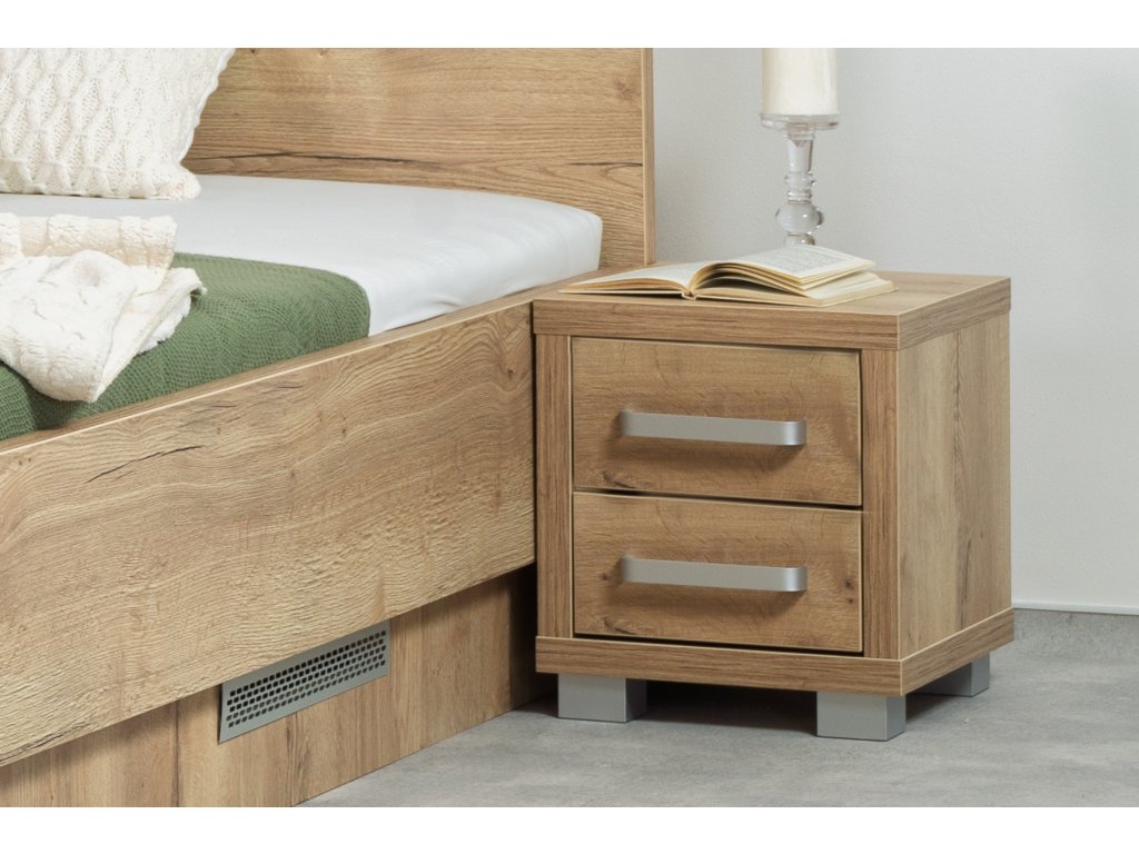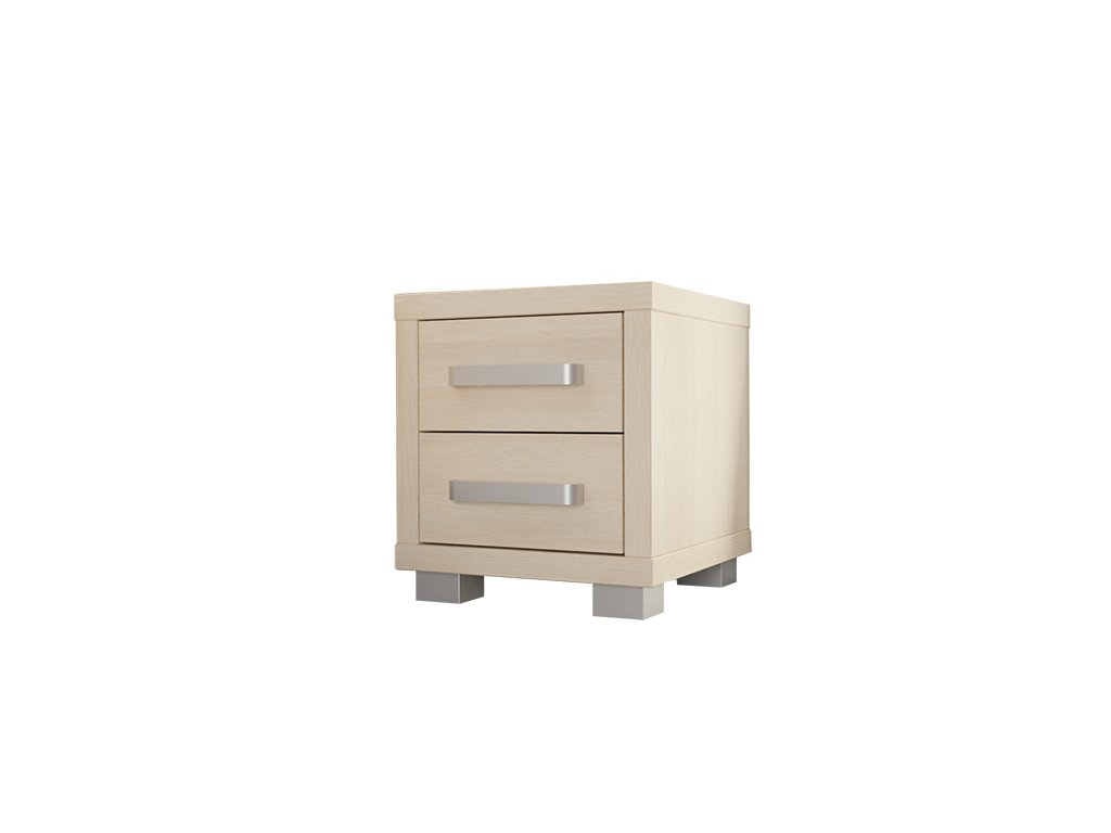 Noční stolek se dvěma zásuvkami. Zásuvky otevřete lehkým zatlačením na čelo zásuvky. Výška nočního stolku je sladěna s výškou bočnice postele typu Lorano, Tropea, Tropea box u hlavy a Salina basic. Stolek je vyroben z laminotřískové desky. Rozměr (šířka, výška, hloubka) 45 x 50,5 x 34 cm.Doplňkové parametry