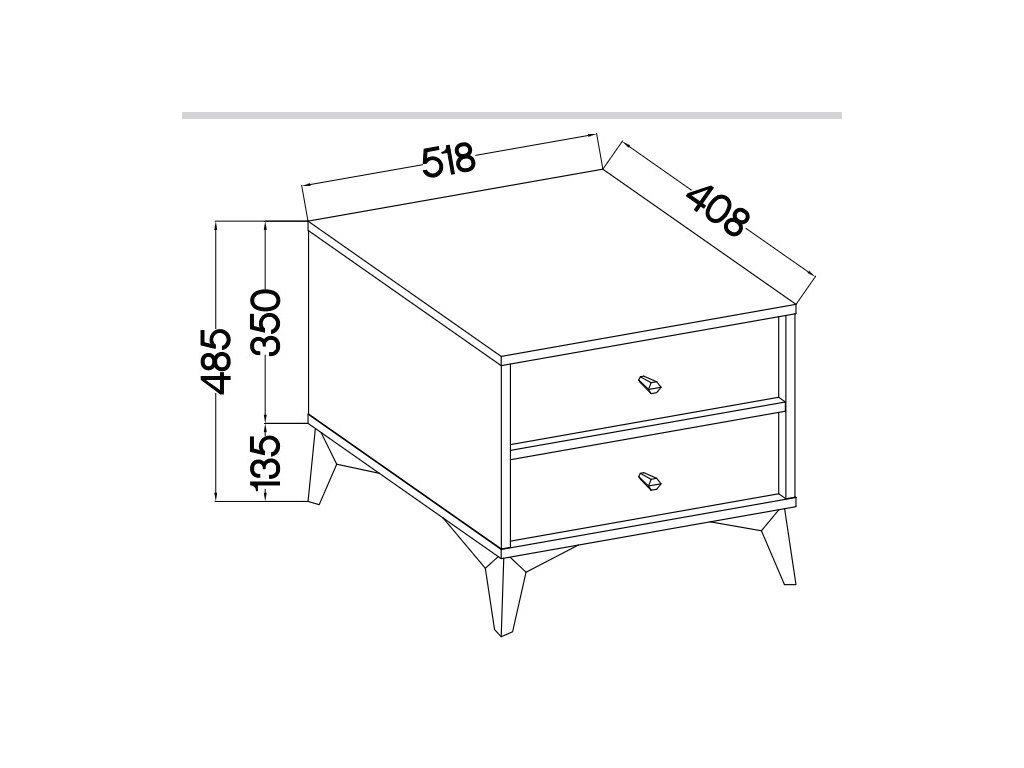 Stolek má výšku 48,5 cm, šířku 51,8 cm a hloubku 40,8 cm, což zajišťuje dostatek prostoru na nočním stolku.