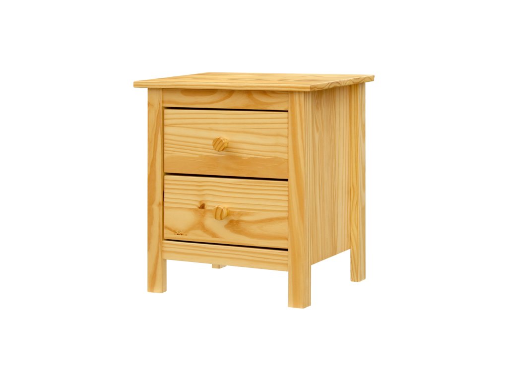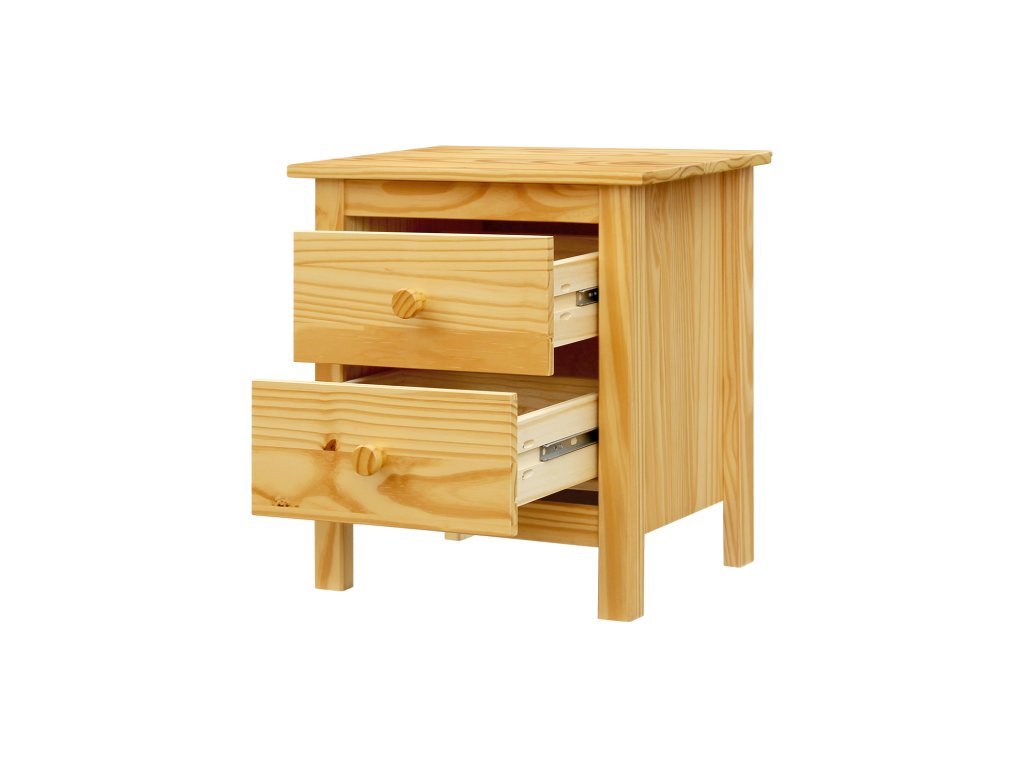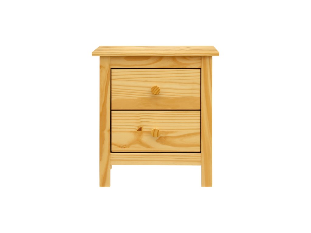 Noční stolek TORINO nabízí dvě zásuvky s kovovými pojezdy pro snadné uložení drobností. Je vyroben z masivní borovice s lakovaným povrchem, který zajišťuje odolnost a dlouhou životnost.