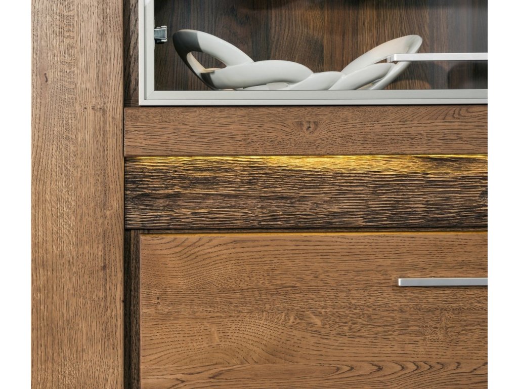 Noční stolek se zásuvkou. Vsazením osvětlení do ozdobné rýhované lišty, které je v ceně, je zvýrazněn rustikální vzhled masivního dřeva. Celá řada se vyznačuje elegancí a jednoduchými tvary, které zaručují plné využití prostoru. Nábytek je v barvě dub rustical, vyroben z kvalitního masivního dřeva, korpusy vnitřní jsou z lamina, korpusy vnější jsou z přírodní dýhy. Úchyty jsou z kovu. Dodáváme ve smontovaném stavu.Doplňkové parametry