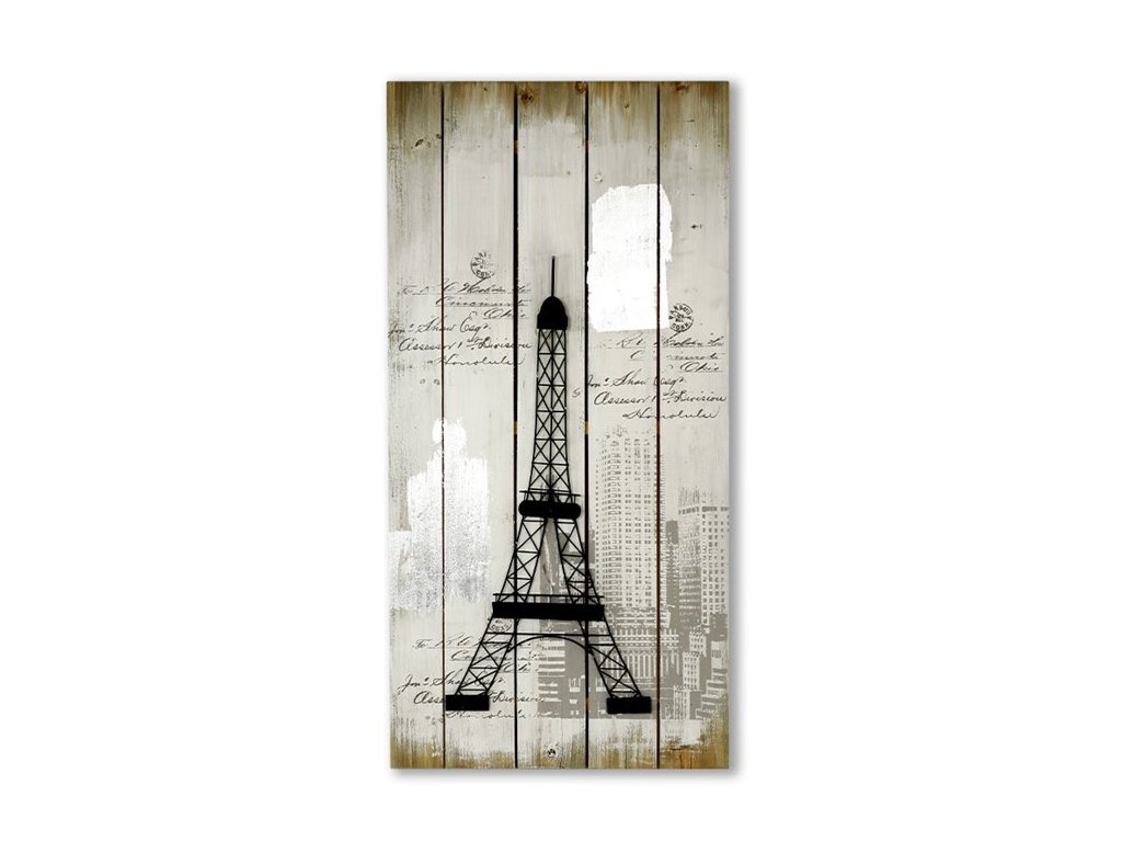 Obraz na dřevěném panelu s motivem Eiffelovy věže přináší do vašeho domova nebo kanceláře stylový prvek s nádechem pařížské atmosféry. Vhodný je pro zavěšení na stěnu v obývacím pokoji, chodbě či pracovně.