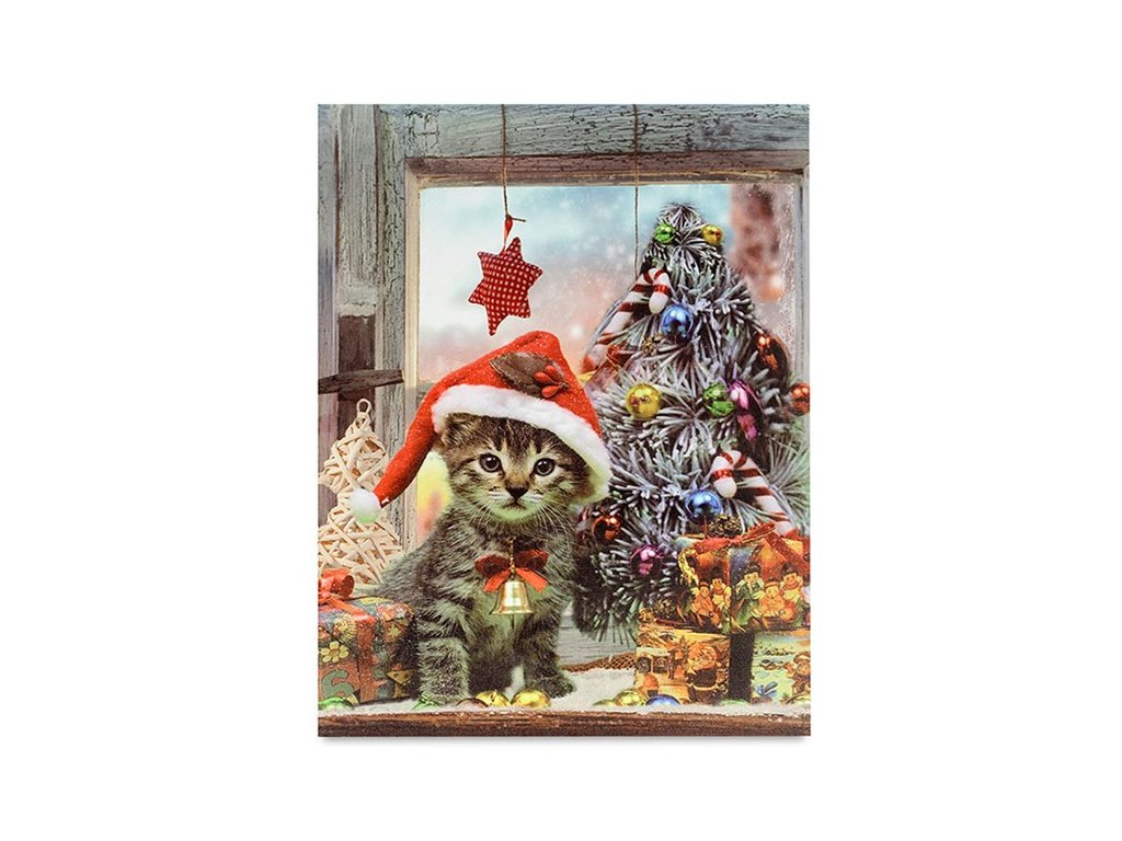Obraz nástěnný - LED osvětlení 1 ks, vánoční motiv s kotětem