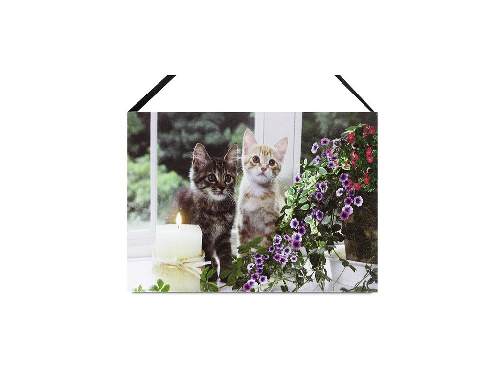 Obraz s kočičím motivem je vhodný jako dárek pro přátele či rodinu, kteří ocení kombinaci dekorace a jemného osvětlení v domácnosti.
