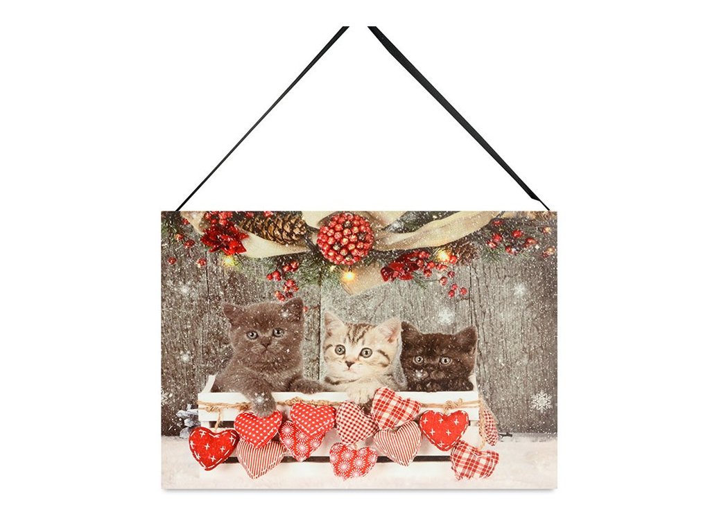 Obraz nástěnný - LED osvětlení 3 ks, vánoční motiv s koťaty