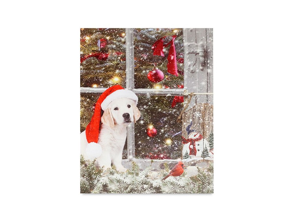 Obraz nástěnný - LED osvětlení 4 ks, zimní motiv se psem