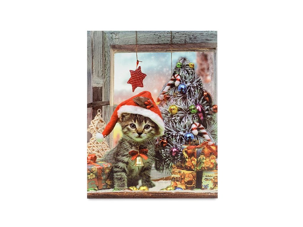 Obraz se stojánkem - LED osvětlení 1 ks, vánoční motiv s kotětem