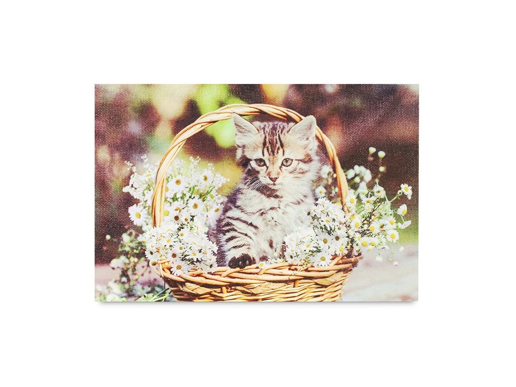 Obraz se stojánkem - LED osvětlení 3 ks, kotě v košíku