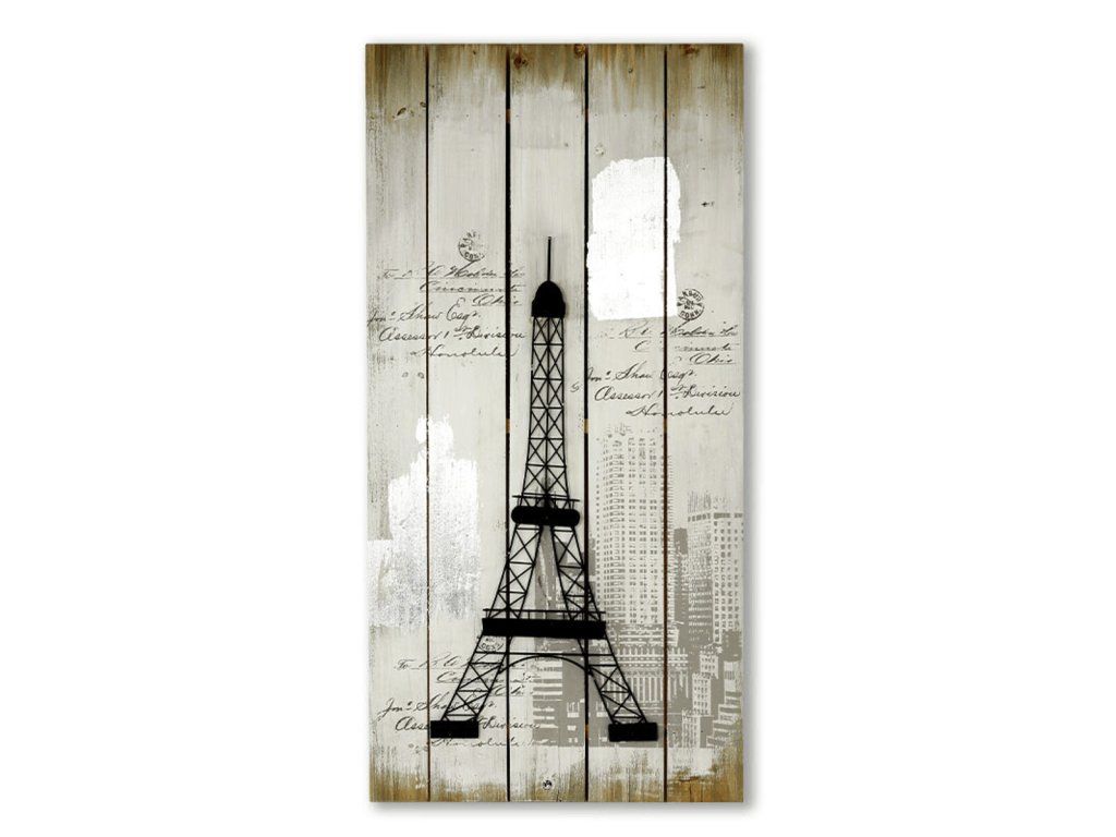 Obraz na dřevěném panelu s motivem Eiffelovy věže přináší do vašeho domova nebo kanceláře stylový prvek s nádechem pařížské atmosféry. Vhodný je pro zavěšení na stěnu v obývacím pokoji, chodbě či pracovně.