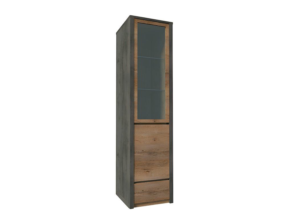 Vitrína, dub lefkas tmavý/smooth šedý, MONTANA W1D