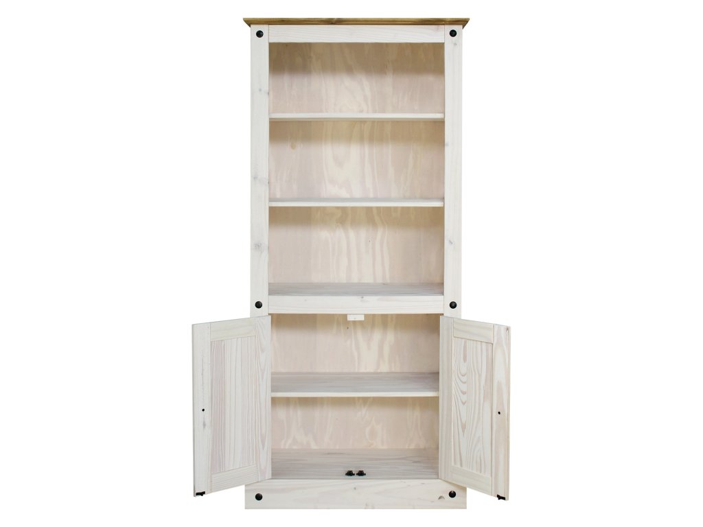 Knihovna je vyrobena z masivní borovice, která je voskovaná v bílém odstínu s medovou horní deskou pro zvýraznění přírodního vzhledu.