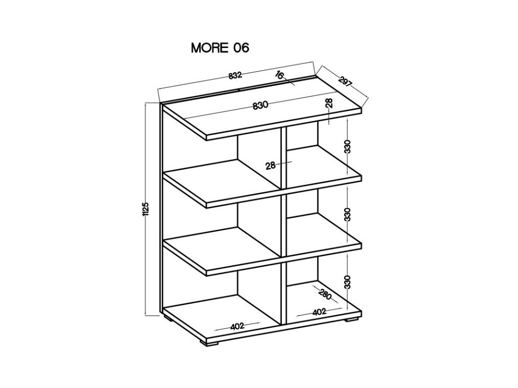 Policový regál Marek můžete využít mnoha způsoby. Může sloužit například jako dělící stěna k oddělení zóny v pokoji, jako knihovna, nebo regál na hračky či dekorace. Regál je vyrobený z lamina tloušťky 28 mm s hranami ABS 0,4 mm, které je odolné a snadné na údržbu. Regál je dodávaný v demontu. Součástí balení je montážní návod, včetně všech potřebných spojovacích prvků. Rozměry : š. 83,2 cm, v. 112,5 cm, hl. 29,7 cm