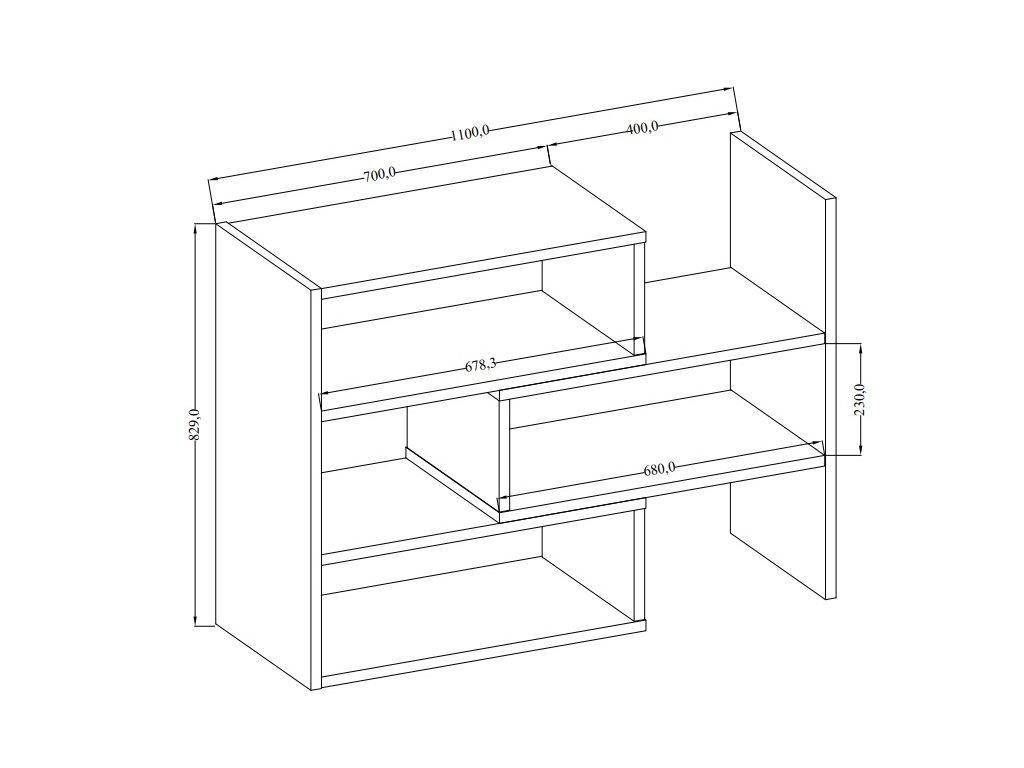 Regál má šířku 110 cm, výšku 82,9 cm a hloubku 24 cm, což umožňuje uspořádat knihy, hračky nebo dekorace přehledně a efektivně.